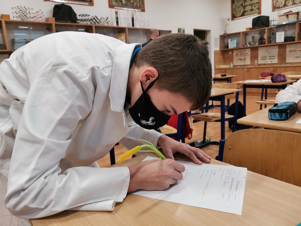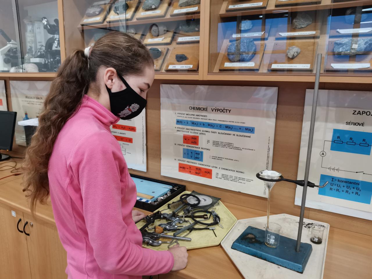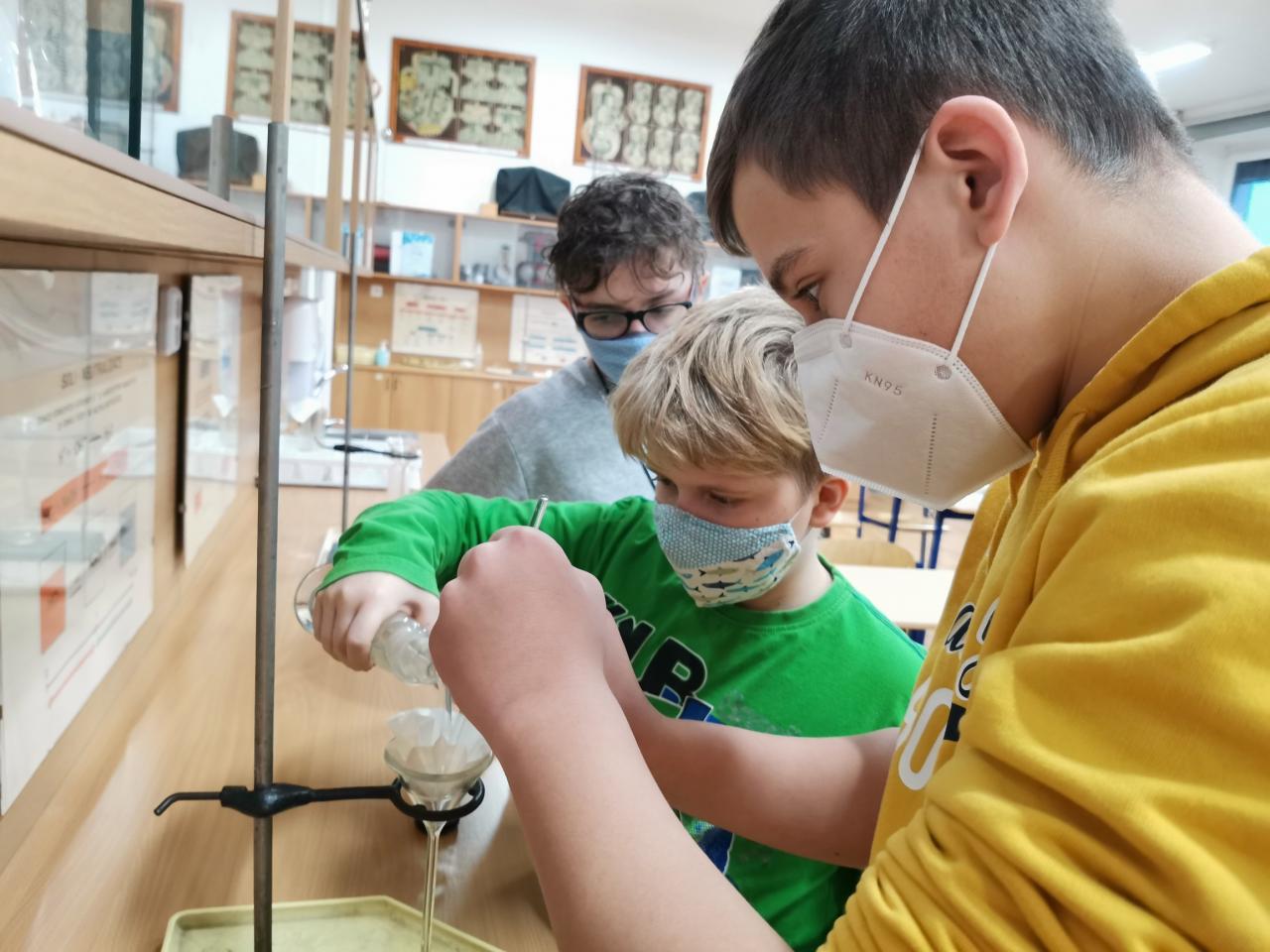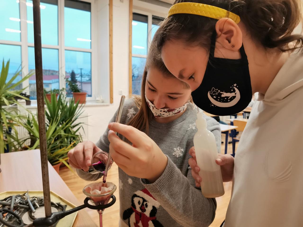 Přece jen se něco stihlo! Ještě před nástupem na distanční výuku žáci 7.A zvládli provést laboratorní práci zaměřenou na oddělování složek směsí pomocí filtrace. V rámci několika hodin si žáci názornými postupy propojili již probrané učivo, a tak pro ně bude učební látka určitě lépe zapamatovatelná a mohou na ni navázat, až to zase situace dovolí...