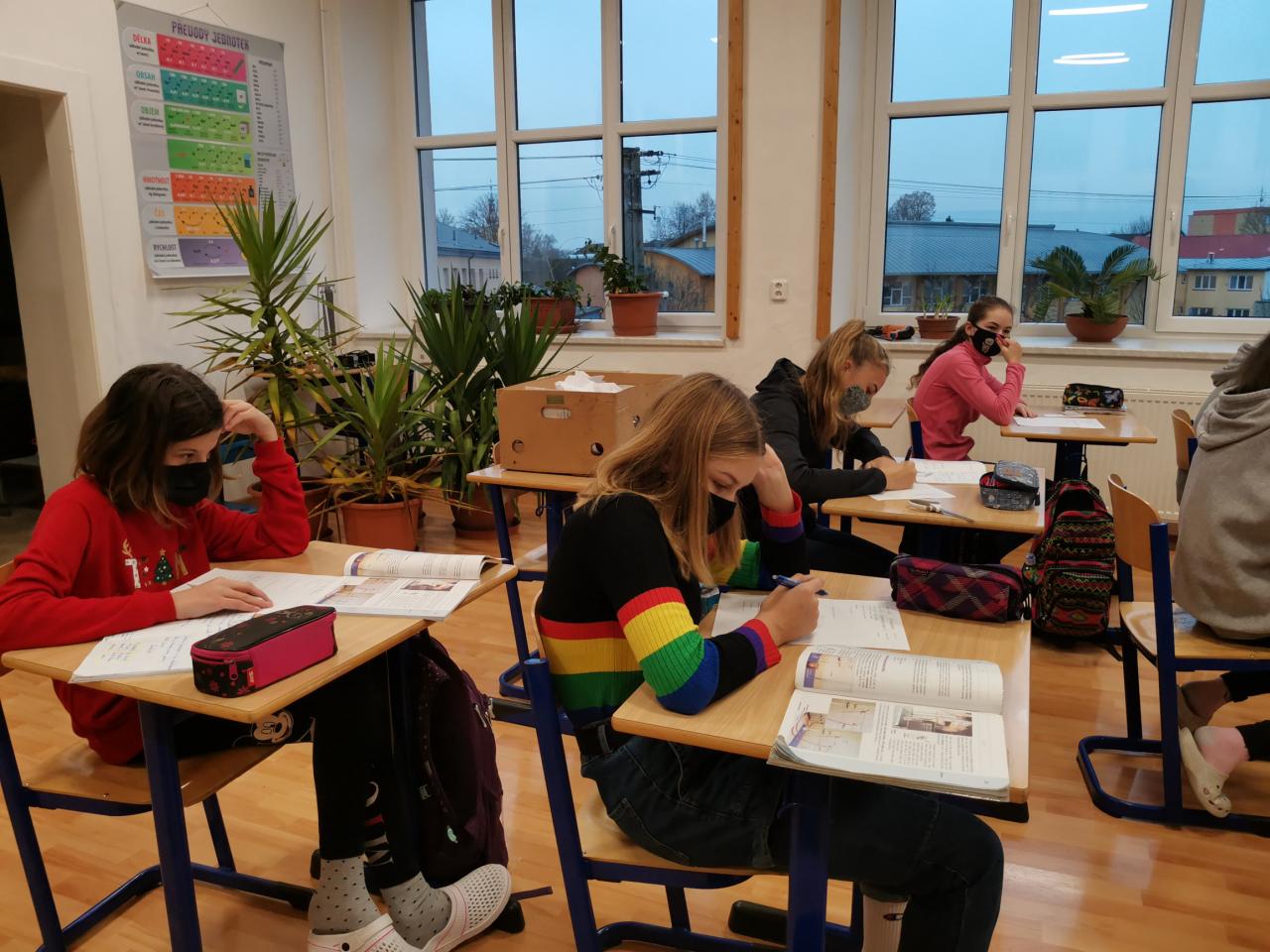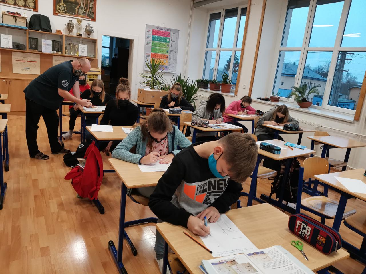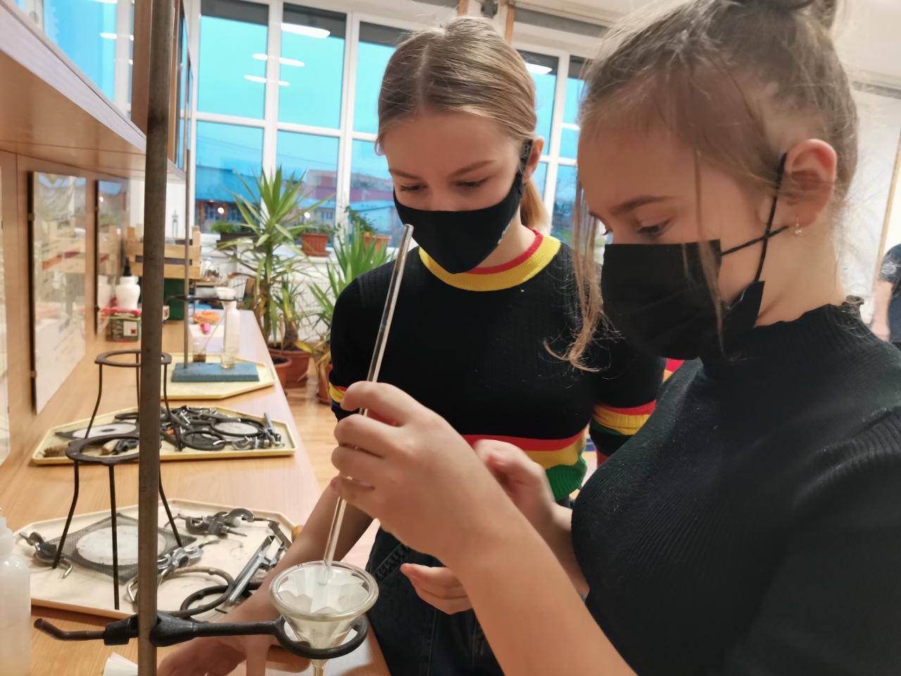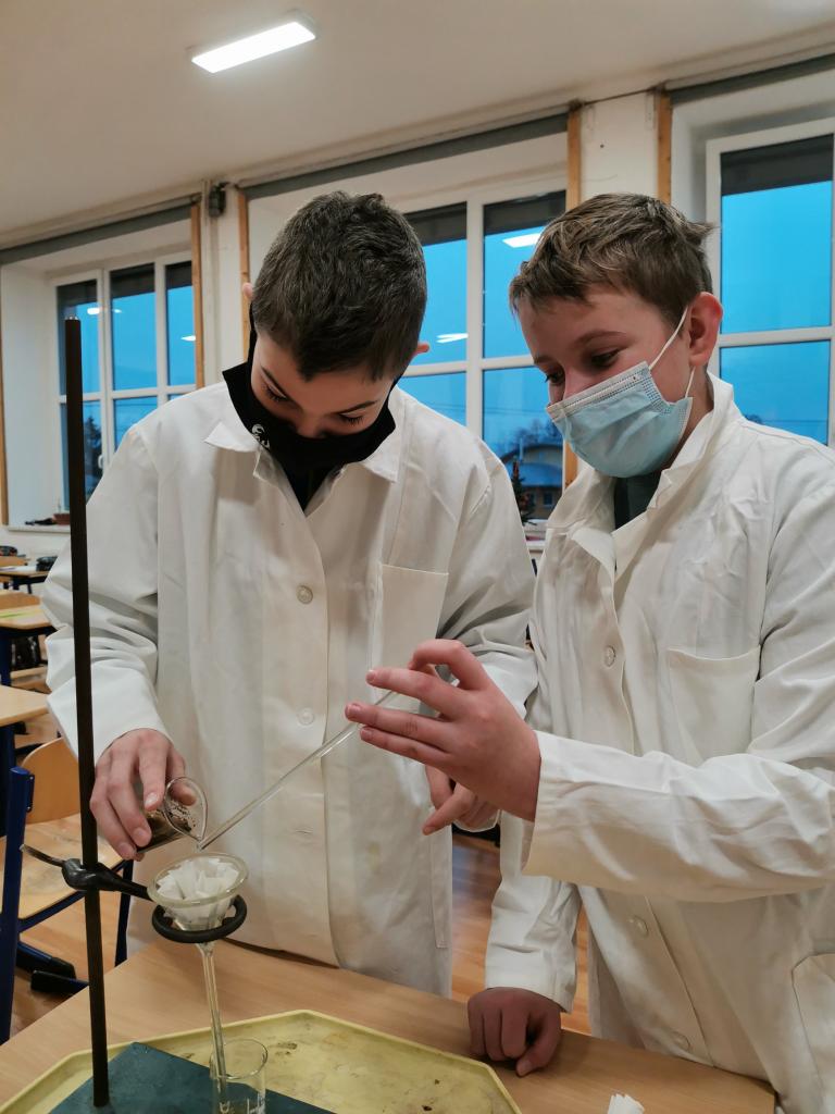 Přece jen se něco stihlo! Ještě před nástupem na distanční výuku žáci 7.A zvládli provést laboratorní práci zaměřenou na oddělování složek směsí pomocí filtrace. V rámci několika hodin si žáci názornými postupy propojili již probrané učivo, a tak pro ně bude učební látka určitě lépe zapamatovatelná a mohou na ni navázat, až to zase situace dovolí...