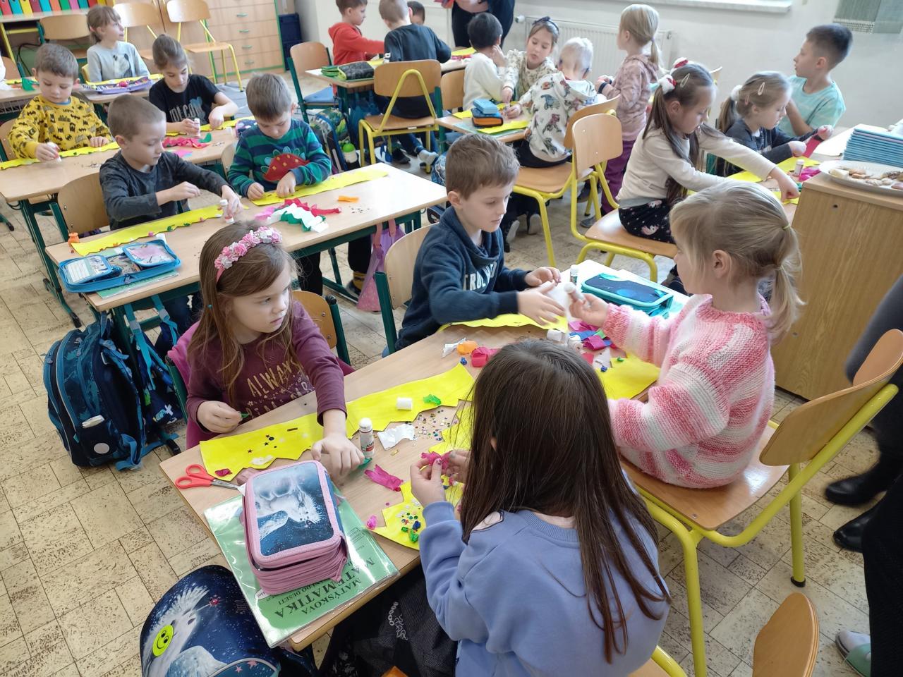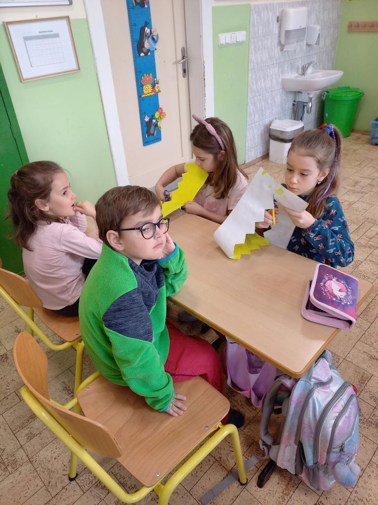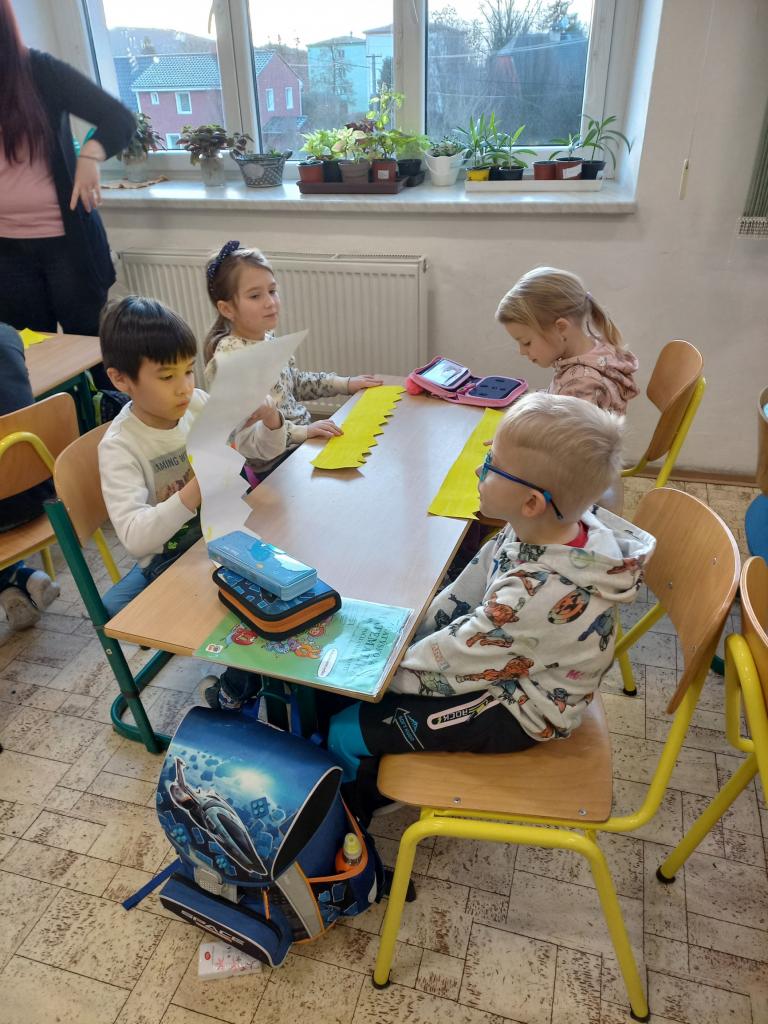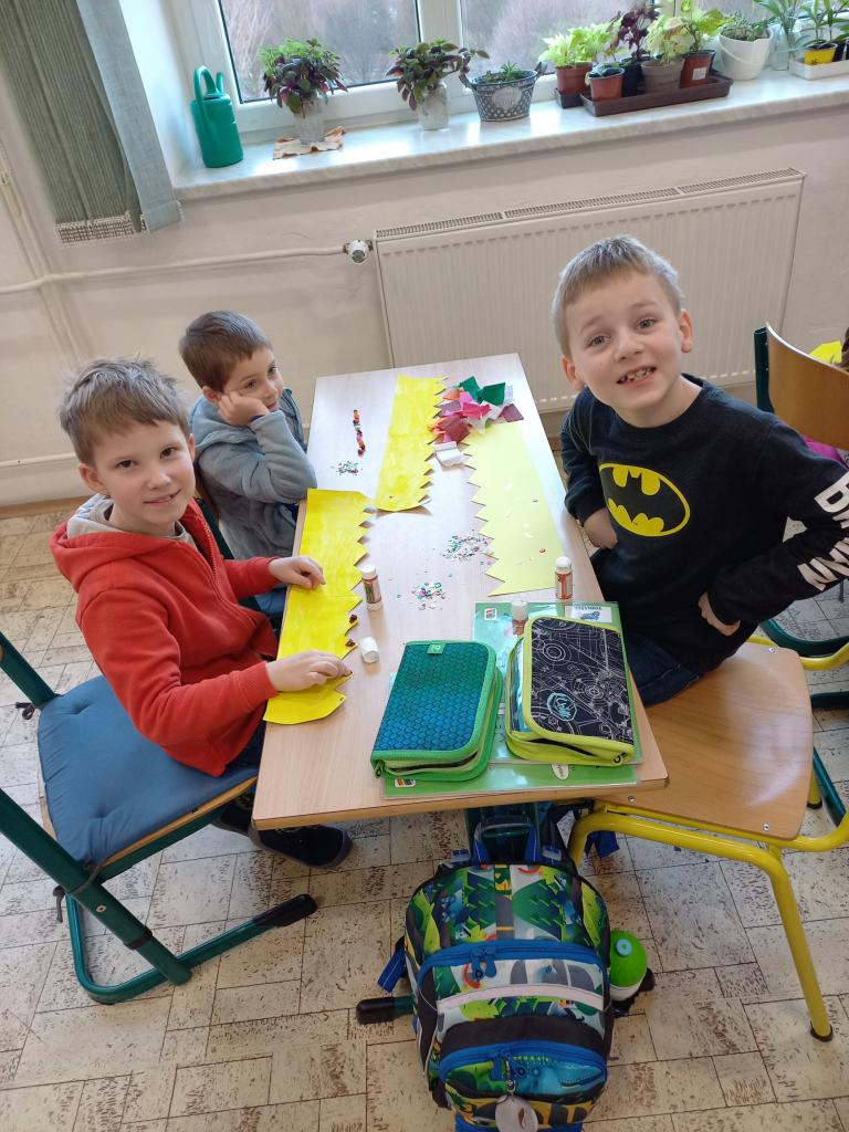 4. ledna navštívila třída Zajíčků z mateřské školy děti z 1. A. Vzhledem k blížícímu se svátku Tří králů si předškoláčci za pomoci učitelek vyrobili papírové koruny, které si krásně nazdobili. Prvňáčkům přednesli básničku a při odchodu zazpívali to známé “My tři králové jdeme k vám ...” Svými korunkami se přišli také pochlubit za třeťáky a jejich třídní učitelkou. Proč asi? Někteří totiž právě do téhle třídy a k této paní učitelce 1. září 2023 nastoupí ...