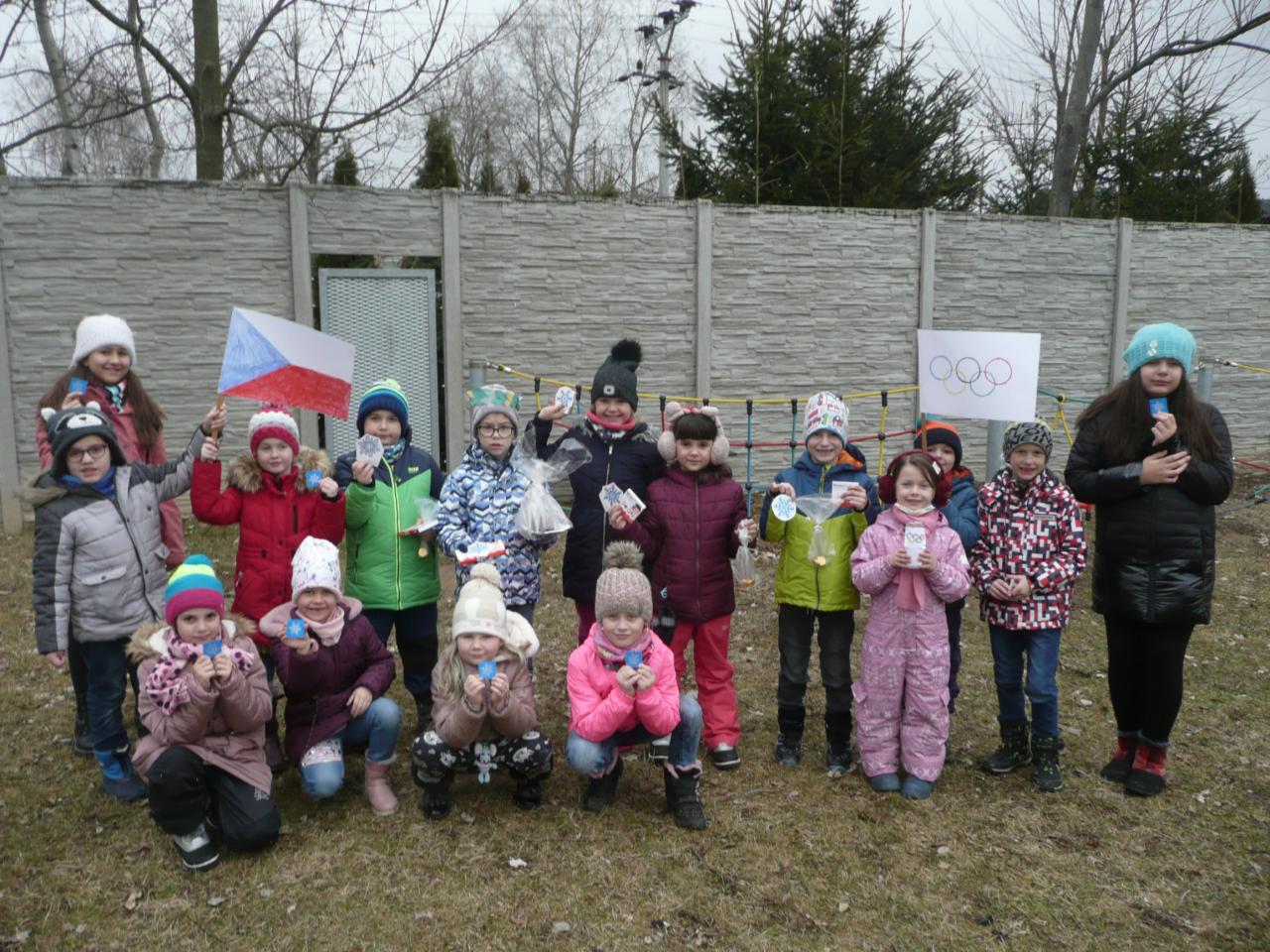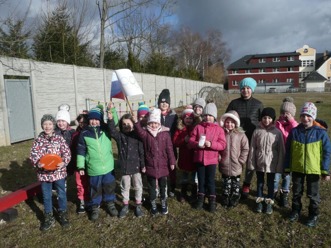 Během ledna jsme s dětmi z I. odd. školní družiny putovali s letošní celoroční hrou " Cesta kolem světa" slunným Řeckem. Bylo nasnadě využít kolébku olympijských her jako motivaci k našemu sportovnímu vyžití a vzdálené podpoře našich olympioniků v Pekingu. Pobyt na čerstvém vzduchu, soupeření v duchu hesla "Není důležité zvítězit, ale zúčastnit se", bylo naším hlavním cílem. Malí sportovci se utkali v pentathlonu (antický pětiboj), ve kterém museli předvést všestranné a známé: Rychleji, výše, silněji. Olivový věnec a sochu vítěze získal s nejvyšším počtem bodů Štěpán John, druhé místo s drobnou jednobodovou ztrátou obsadil Adam Šimek a krásné třetí místo vybojovali (díky našim pravidlům) tři sportovci se stejným bodovým ziskem: Alžběta Jeřábková, Daniela Matýsová a Petr Havlas. Gratulujeme!
