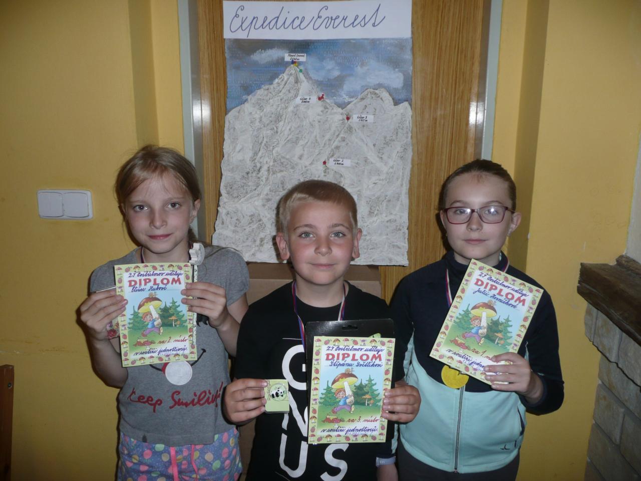 Horolezčaty, milovníky a znalci hor vůbec se stali na týden třeťáci. V krásném prostředí Jeseníků v obci Ostružná plnili úkoly projektu “Až na vrcholky hor”, což je kupodivu velice bavilo ... Počasí jim celkem přálo, proto podnikali výlety do blízkých i vzdálenějších míst, které byly doplněny soutěžemi, sportovním zápolením a pro zklidnění také chvilkami výkladů o horách. Hlavním cílem se stalo dobytí vrcholu Everestu, kam jednotlivá družstva postupovala ze základního tábora pomocí získaných bodů. Z úspěchu se mohli malí horolezci radovat na diskotéce, při zpěvu s kytarou, nechyběla stezka odvahy a o nebezpečí číhajícím na horách jim vyprávěl zkušený člen HS.