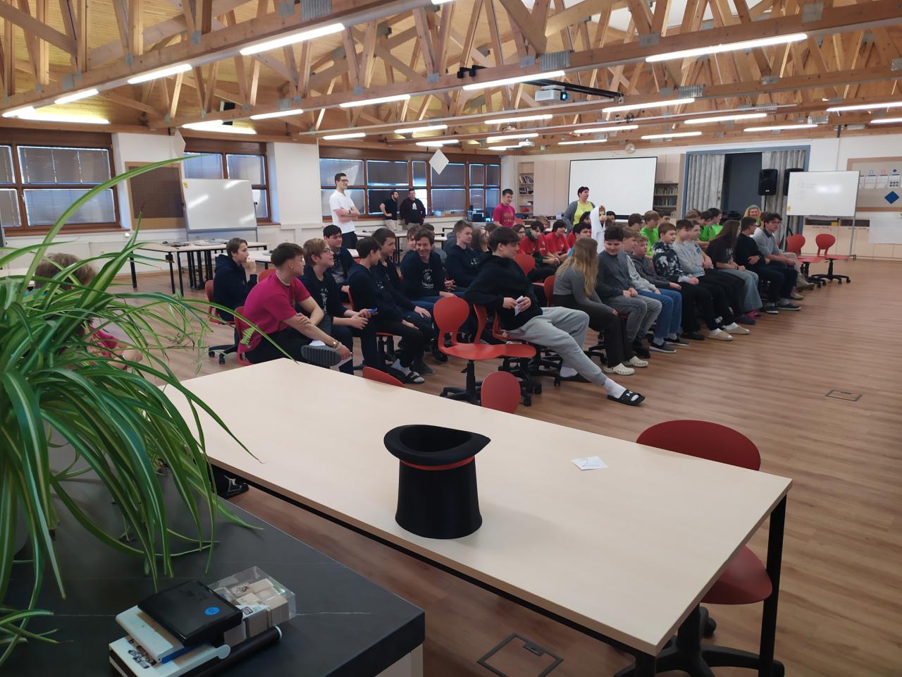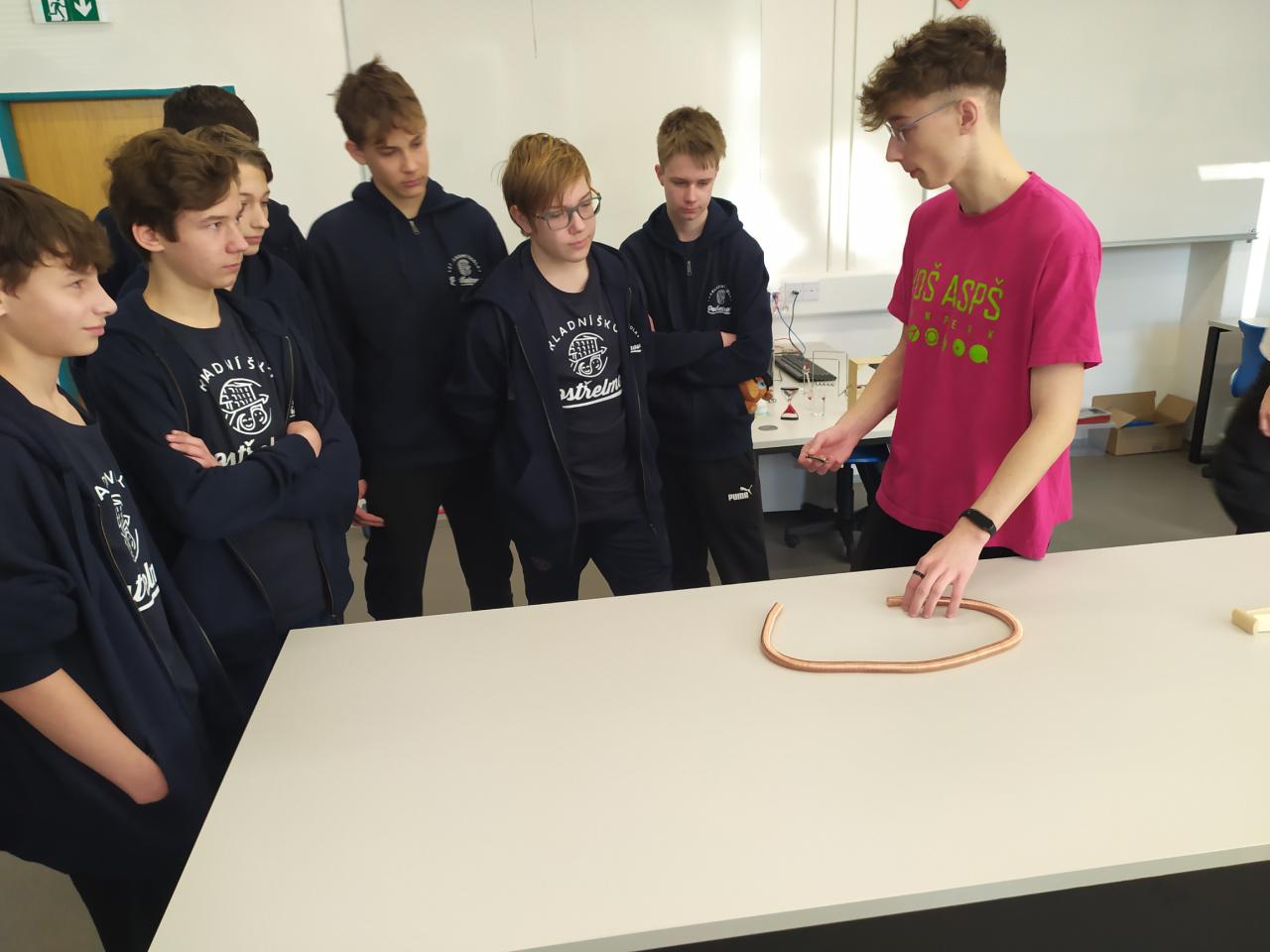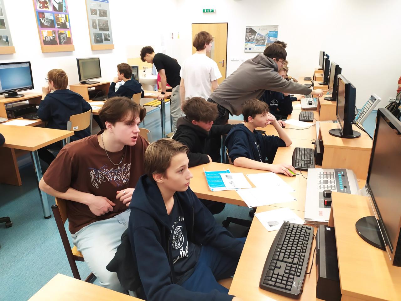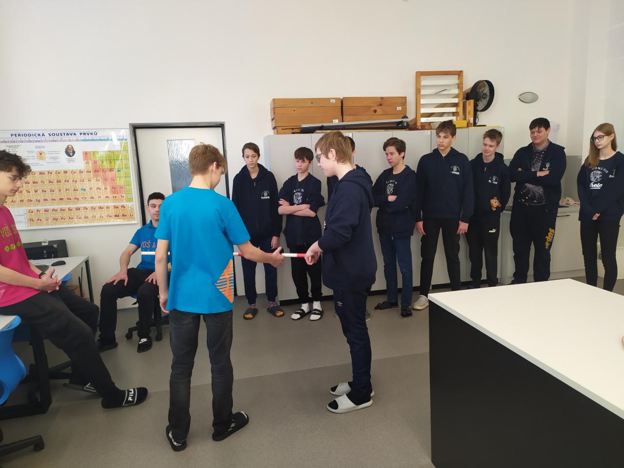 V úterý 30.1. 2024 se našich 9 deváťáků zúčastnilo již tradičního soutěžního dne pro žáky základních škol nazvaný „Den středoškolákem“. Žáci strávili jeden vyučovací den na VOŠ a SPŠ Šumperk, kde v roli učitelů vystupovali studenti střední školy. Mezi obory, které si budoucí středoškoláci vyzkoušeli, byla elektrotechnika, strojírenství, informační technologie a technické lyceum. Praktické zkušenosti pak nabývali na pracovištích s názvy Zuřivý reportér, Kdo modeluje, nezlobí, Posviť si na to a Zdatný fyzik. Šlo o velice zajímavou a zdařilou akci!