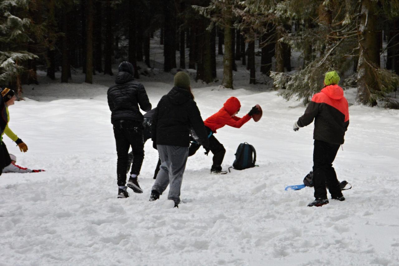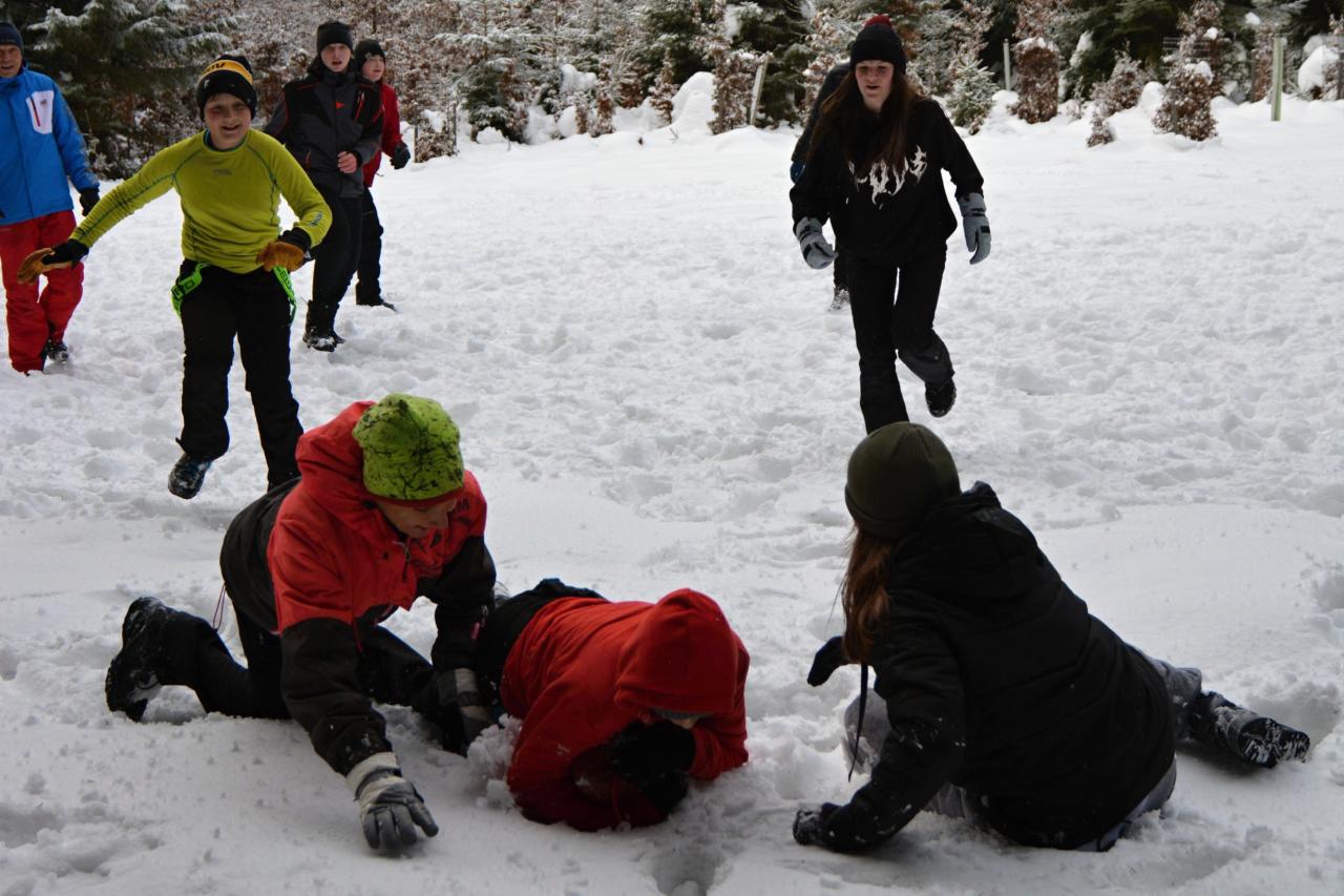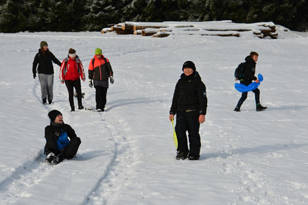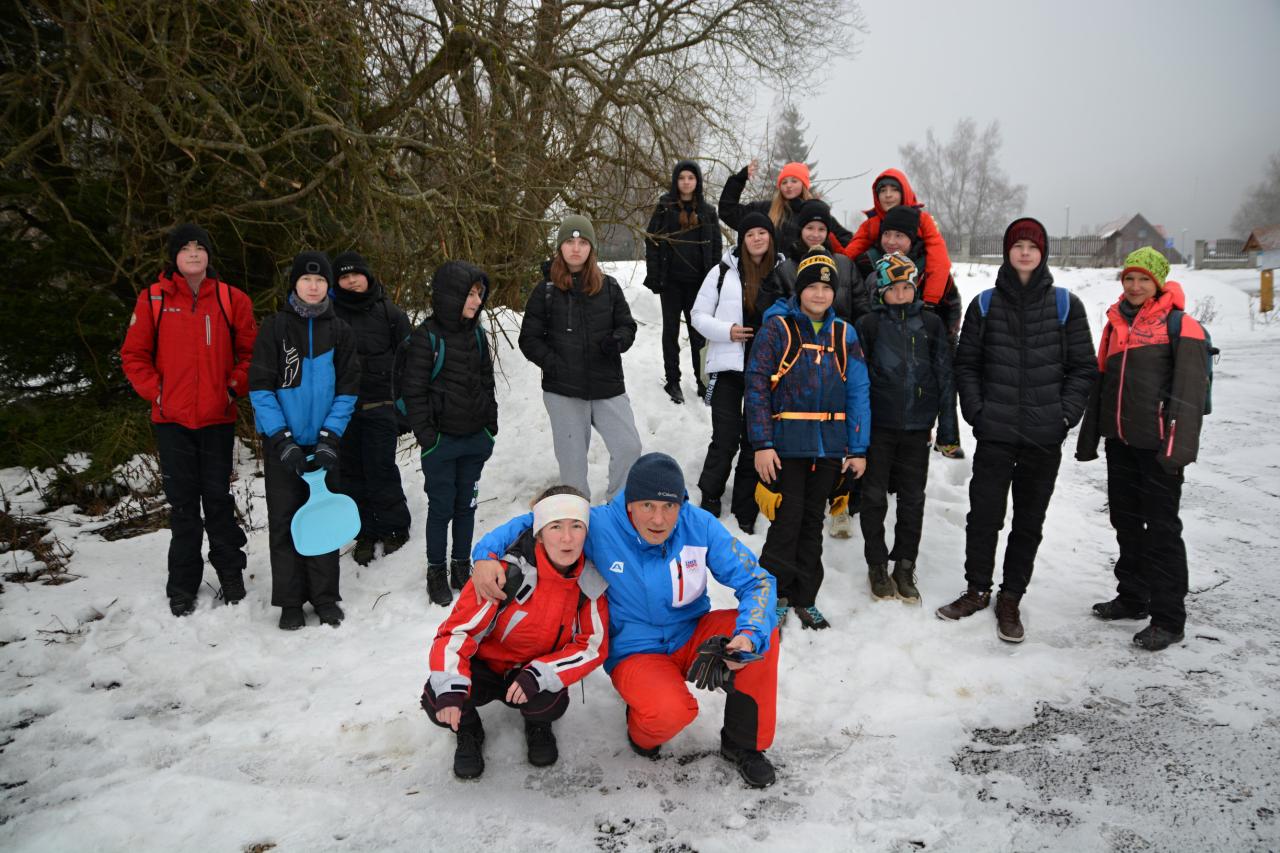 Parta osmáků vyrazila za zimními radovánkami do Jeseníků. Ze stanice Ramzová zamíříli do Petříkova, kde si zasvištěli z kopce na igelitech. Pak se trochu zadýchali při prudším výšlapu do svahu Ostružníku. Nejvyšším bodem procházky bylo rozcestí Ostružník (926 m.n.m.), kde se zájemci mohli vyřádit v ragby na sněhu. Čas dovolil také příjemný odpočinek včetně občerstvení v útulné chatě u vlakové zastávky.