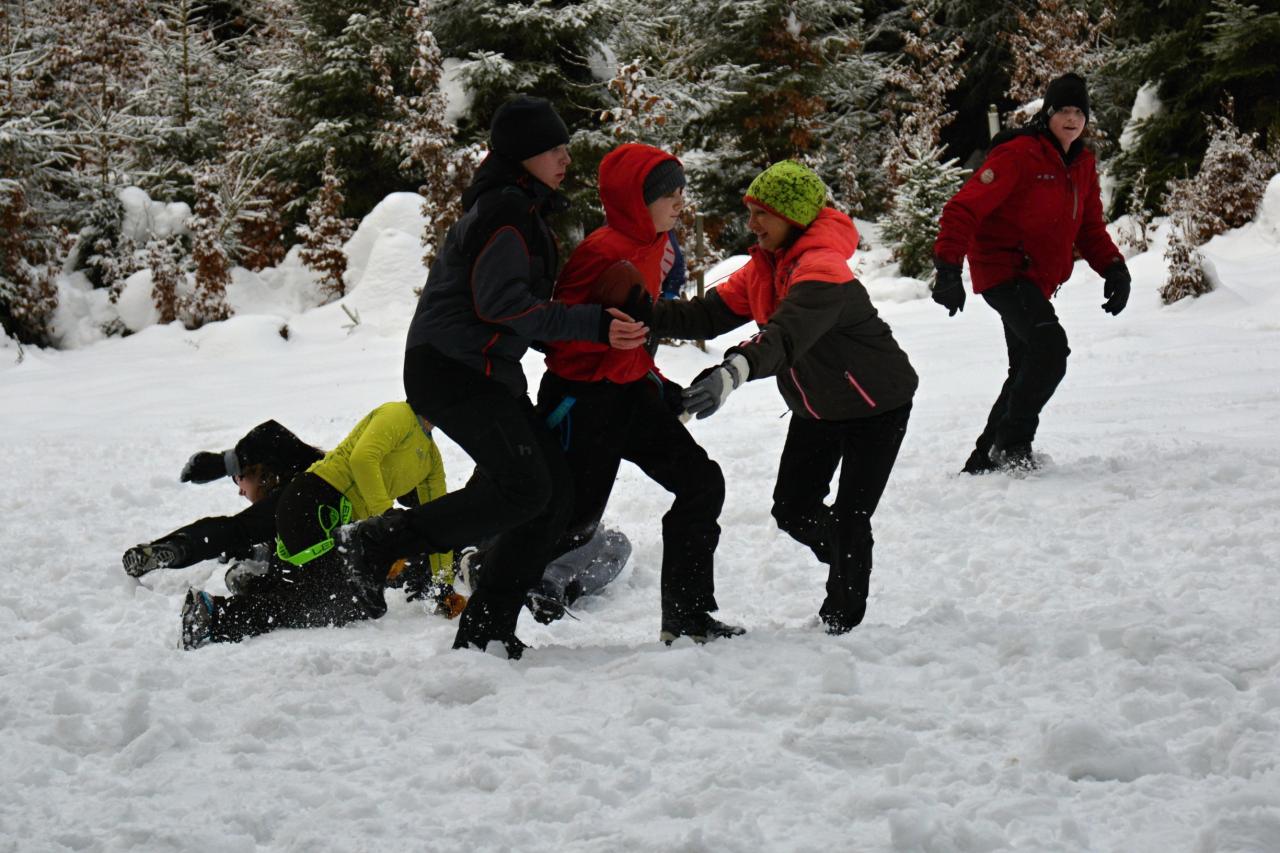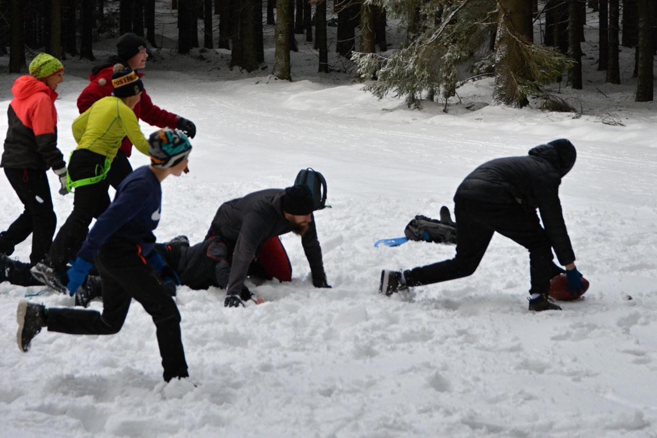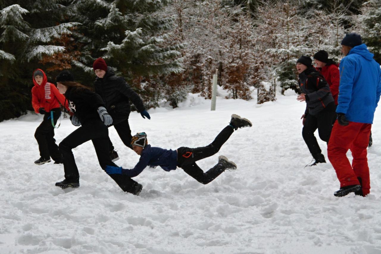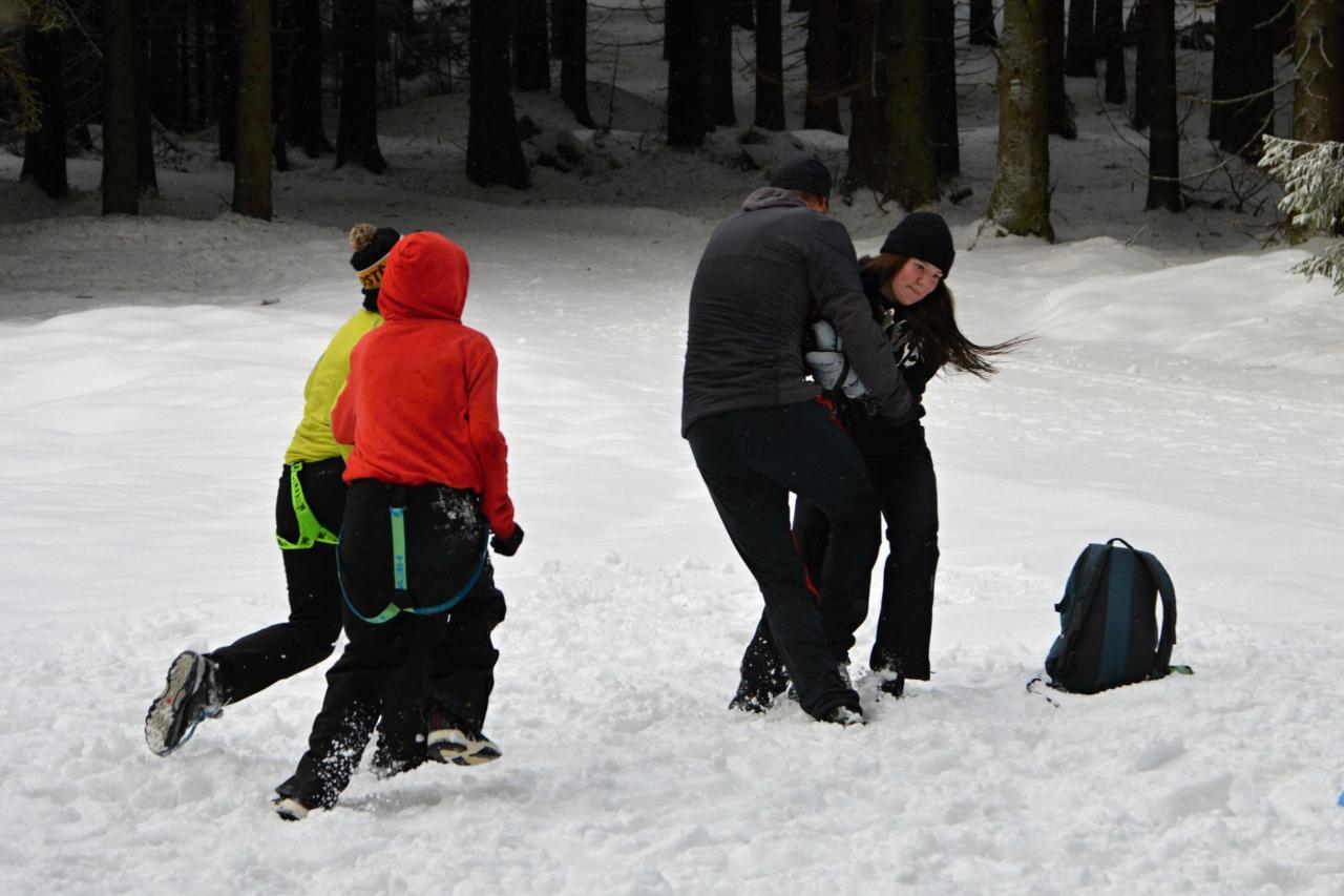 Parta osmáků vyrazila za zimními radovánkami do Jeseníků. Ze stanice Ramzová zamíříli do Petříkova, kde si zasvištěli z kopce na igelitech. Pak se trochu zadýchali při prudším výšlapu do svahu Ostružníku. Nejvyšším bodem procházky bylo rozcestí Ostružník (926 m.n.m.), kde se zájemci mohli vyřádit v ragby na sněhu. Čas dovolil také příjemný odpočinek včetně občerstvení v útulné chatě u vlakové zastávky.
