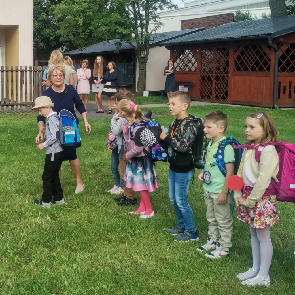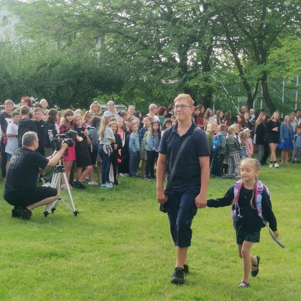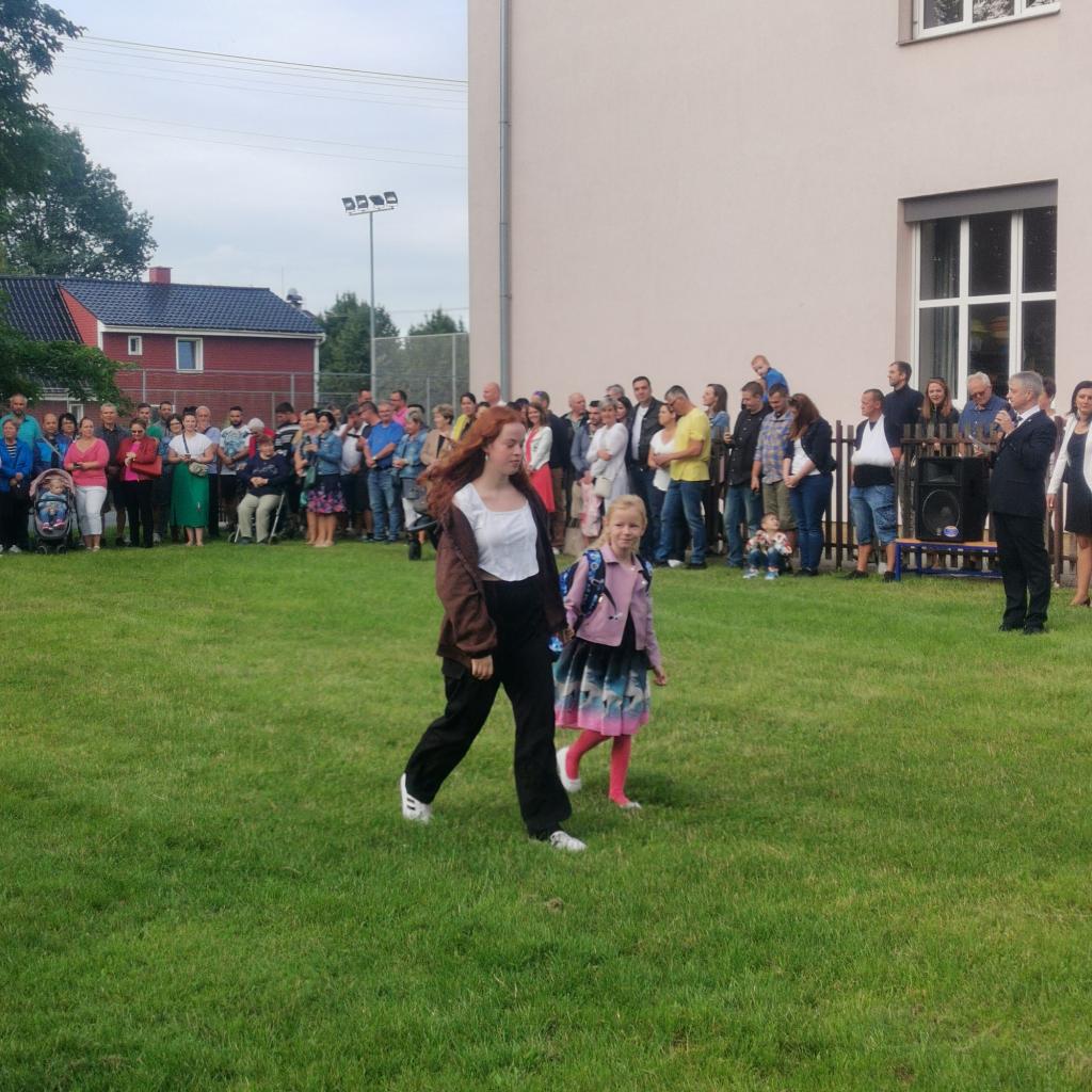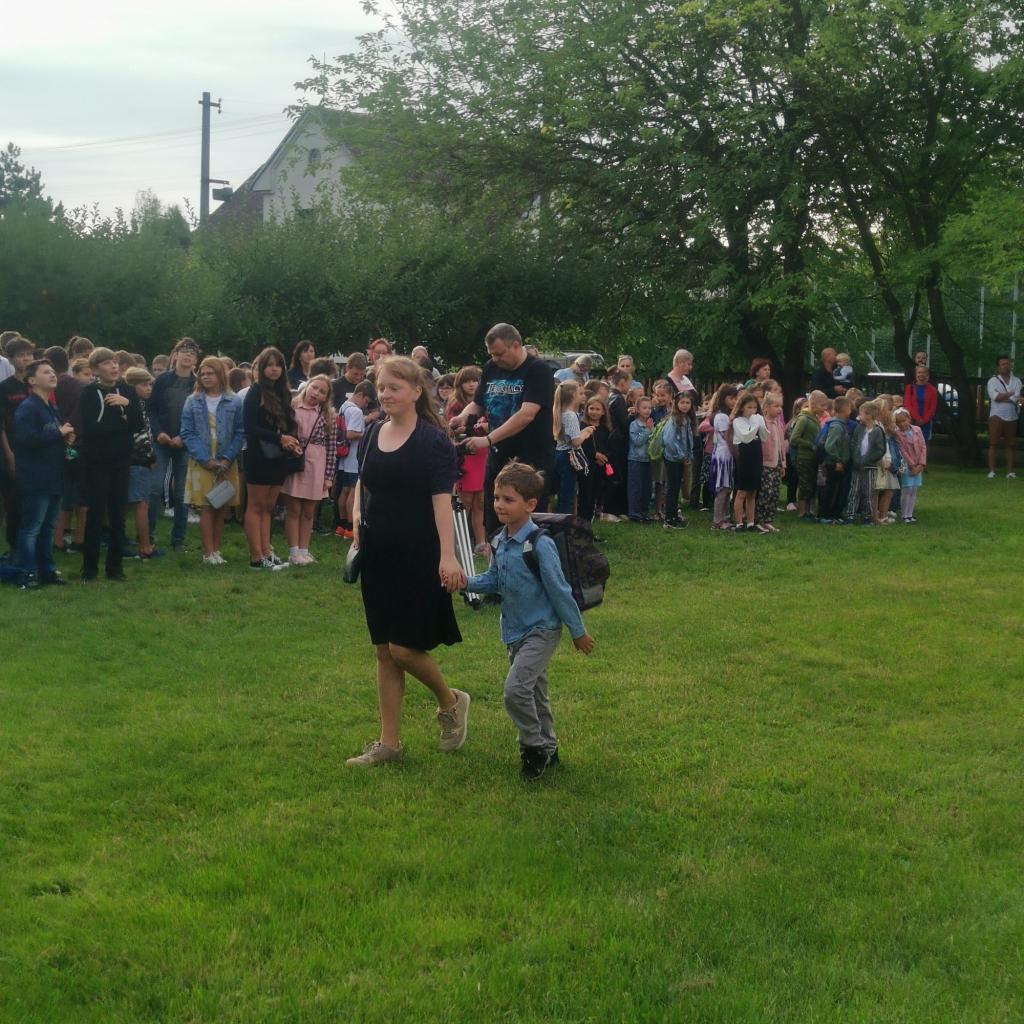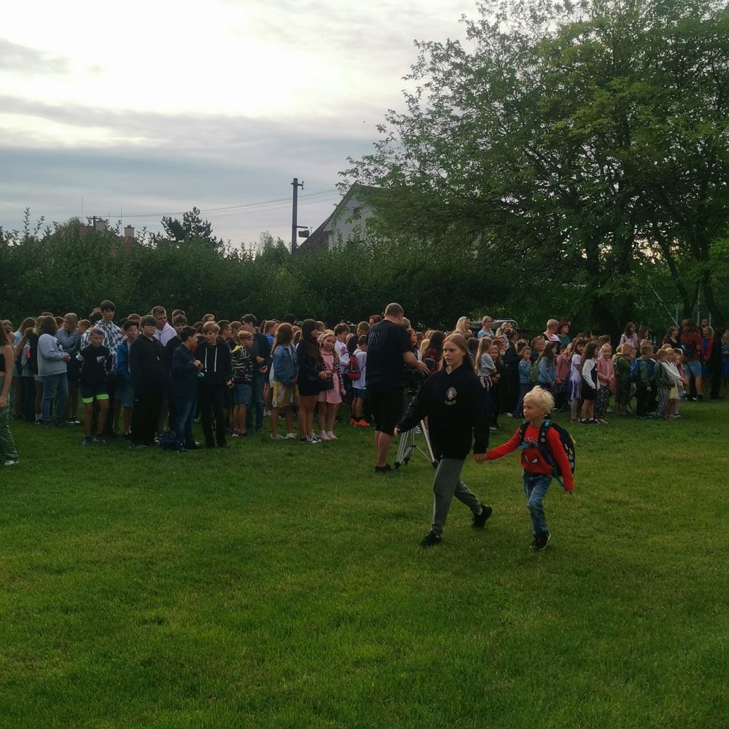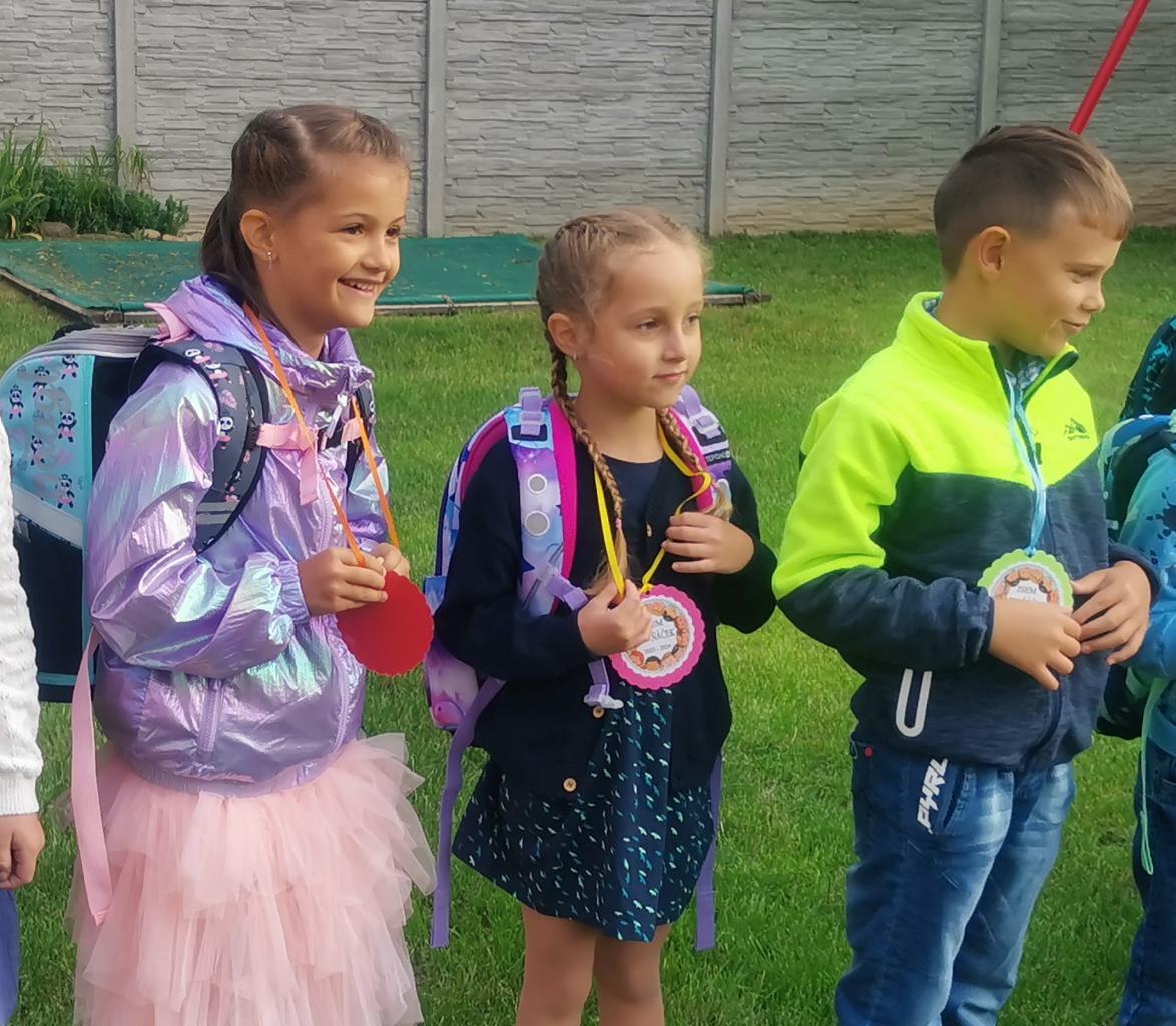 První školní den přivítal žáky krásným slunečným počasím a vypadalo to, že se někteří do školy i těší ... Pro prvňáčky si před hlavní vchod přišly třídní učitelky Iveta Petríková (1.A) a Klára Mičundová (1.B) a na školní zahradě si je seřadily tak, aby je mohli pyšní a dojatí rodiče i prarodiče sledovat při jejich prvních krůčcích za vzděláním ... Po projevu pana ředitele se každého prvňáčka ujal někdo z těch nejstarších, deváťáků, a dovedl ho k paní učitelce. Na uvítanou dostalo 36 dětí medaili a po odchodu do třídy i hezký dáreček.