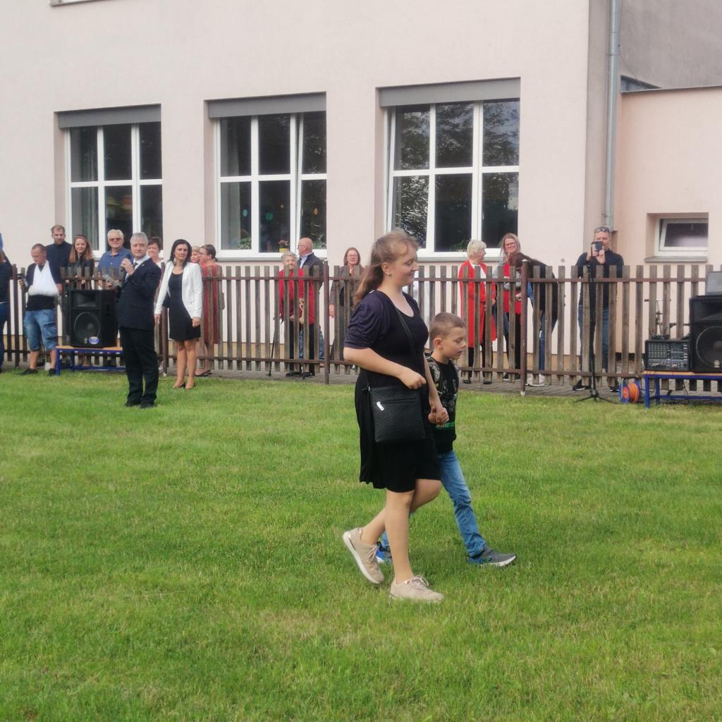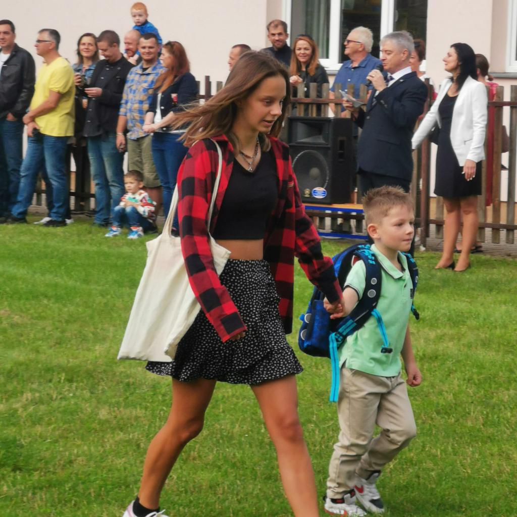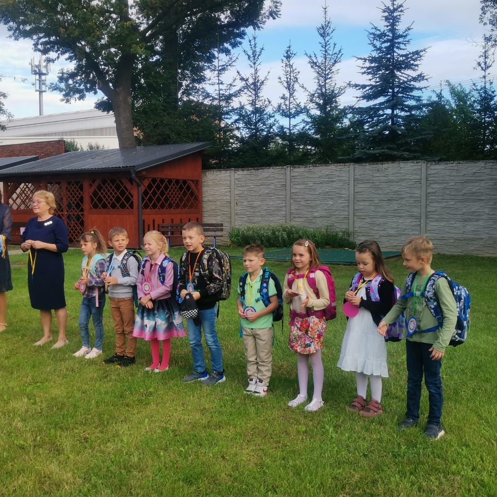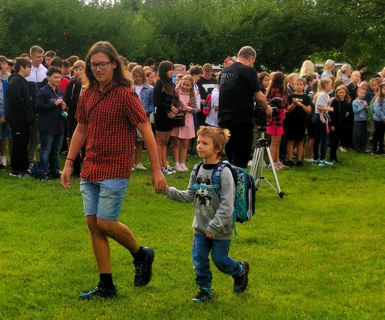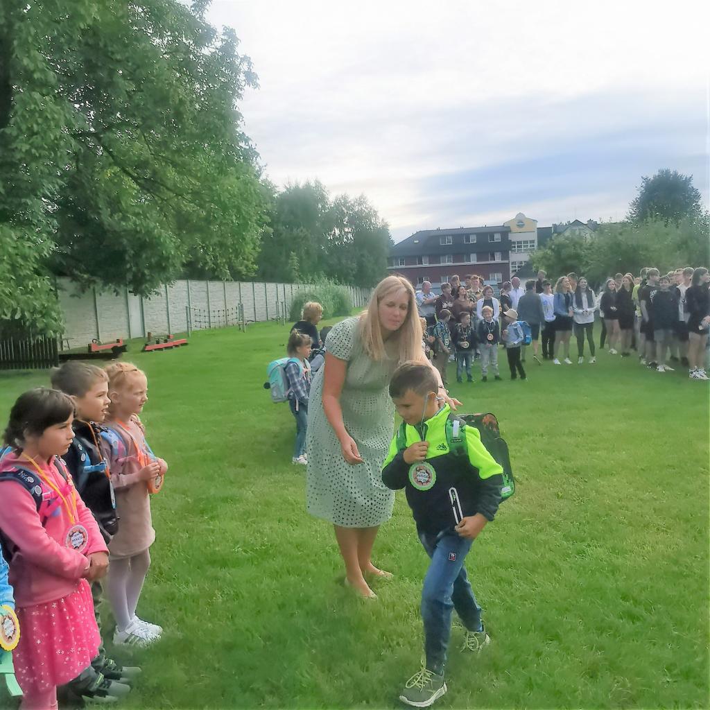 První školní den přivítal žáky krásným slunečným počasím a vypadalo to, že se někteří do školy i těší ... Pro prvňáčky si před hlavní vchod přišly třídní učitelky Iveta Petríková (1.A) a Klára Mičundová (1.B) a na školní zahradě si je seřadily tak, aby je mohli pyšní a dojatí rodiče i prarodiče sledovat při jejich prvních krůčcích za vzděláním ... Po projevu pana ředitele se každého prvňáčka ujal někdo z těch nejstarších, deváťáků, a dovedl ho k paní učitelce. Na uvítanou dostalo 36 dětí medaili a po odchodu do třídy i hezký dáreček.