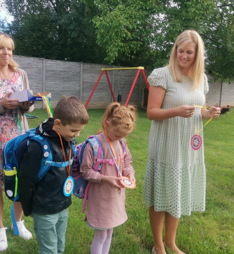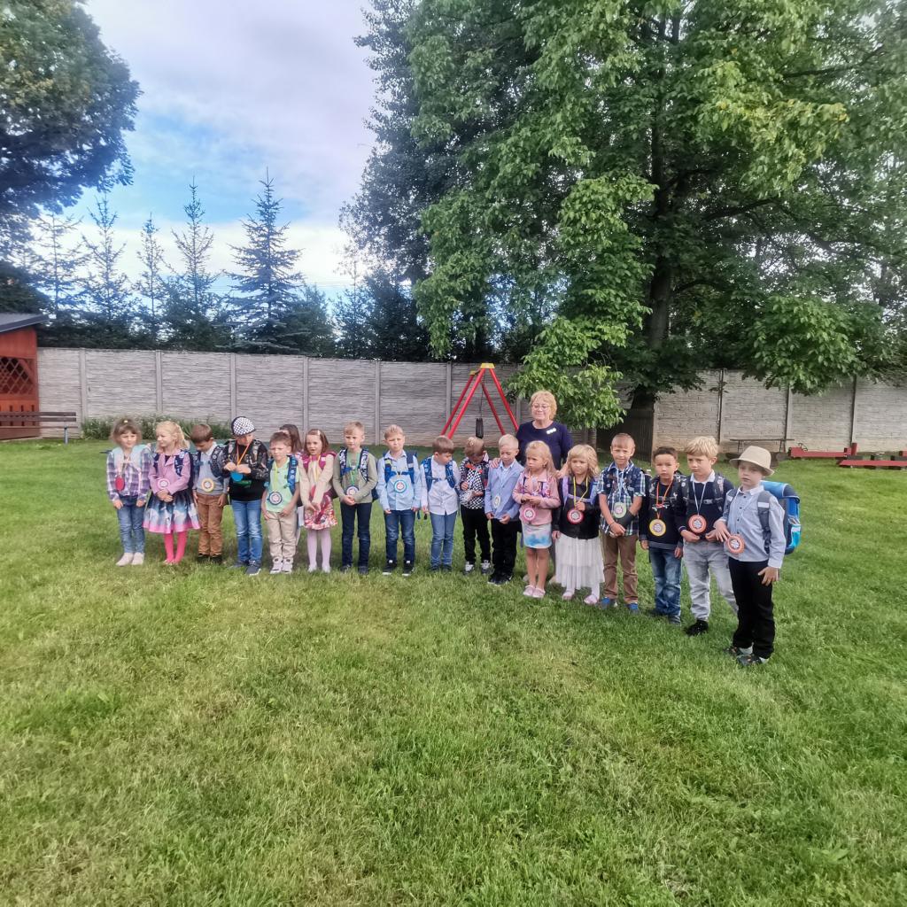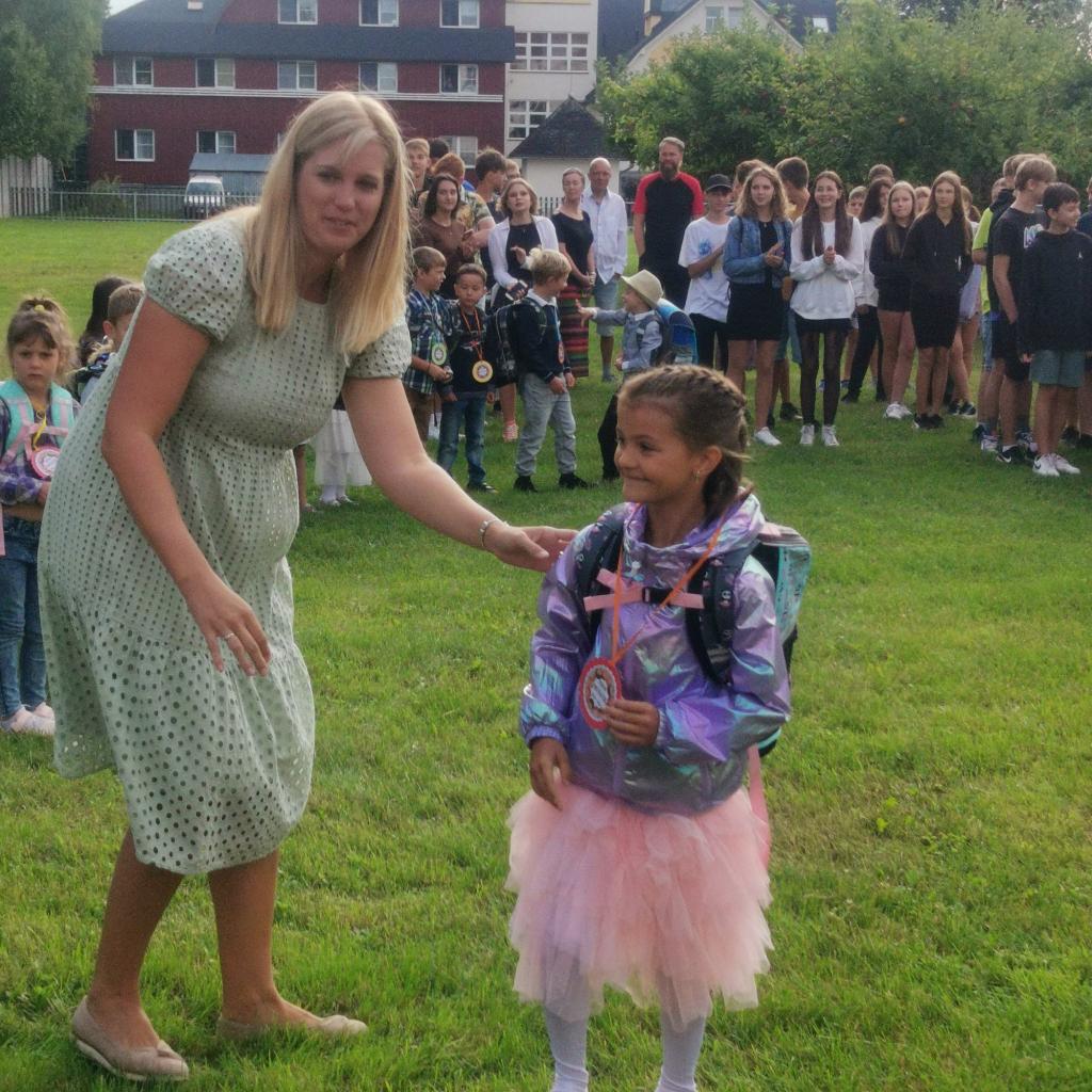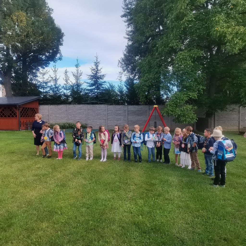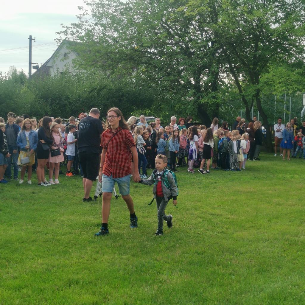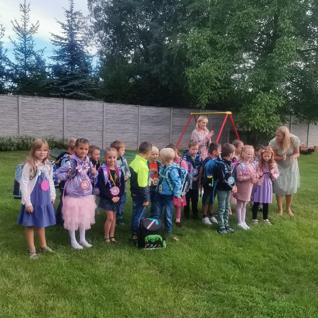 První školní den přivítal žáky krásným slunečným počasím a vypadalo to, že se někteří do školy i těší ... Pro prvňáčky si před hlavní vchod přišly třídní učitelky Iveta Petríková (1.A) a Klára Mičundová (1.B) a na školní zahradě si je seřadily tak, aby je mohli pyšní a dojatí rodiče i prarodiče sledovat při jejich prvních krůčcích za vzděláním ... Po projevu pana ředitele se každého prvňáčka ujal někdo z těch nejstarších, deváťáků, a dovedl ho k paní učitelce. Na uvítanou dostalo 36 dětí medaili a po odchodu do třídy i hezký dáreček.