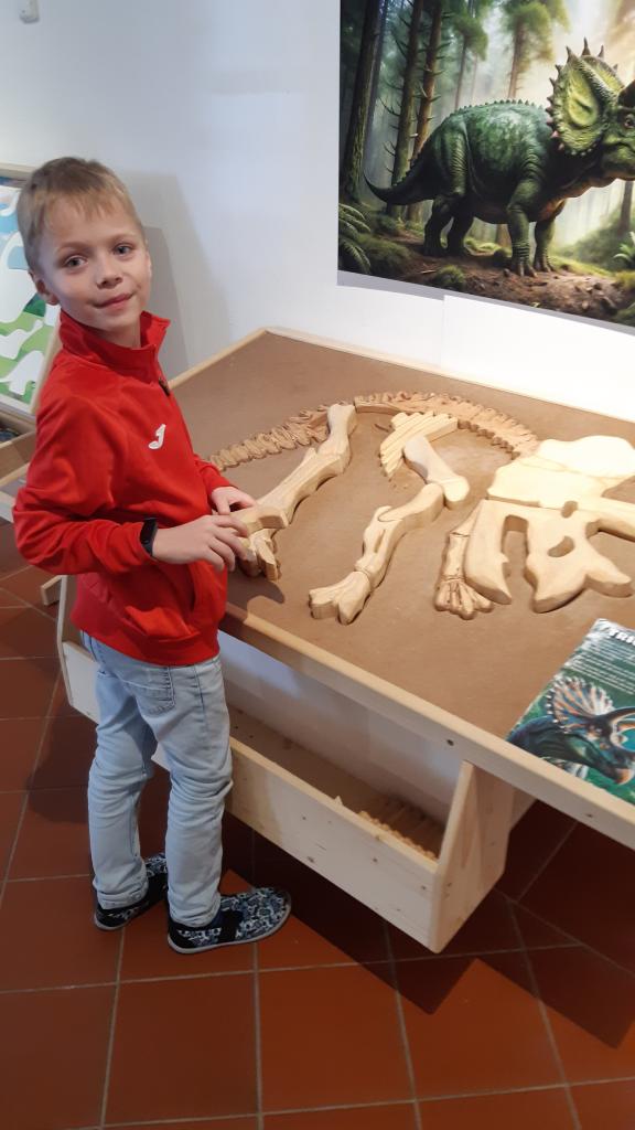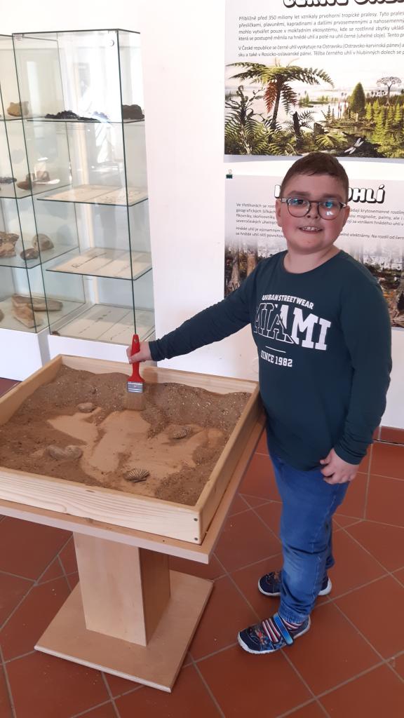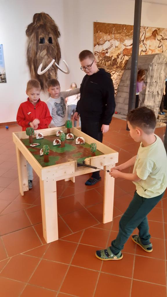 „Výlet zpět o miliony let“ je tematický název letošní interaktivní výstavy v šumperském Muzejíčku. Děti z I. oddělení školní družiny měly možnost výstavu navštívit, vyslechnout si poutavé vyprávění paní průvodkyně a prohlédnout si zajímavé exponáty z pravěku. Poté s nadšením využily tamní hernu k pokusům, spojovačkám a rébusům, ale i sportovním aktivitám spojených z dobou dávno minulou. Společně tak navázaly na celoroční družinovou hru „Letem světem i časem“ a doplnily svoje znalosti. Výlet vlakem do minulosti se všem líbil, sluníčko nám prozářilo příjemně strávené odpoledne.