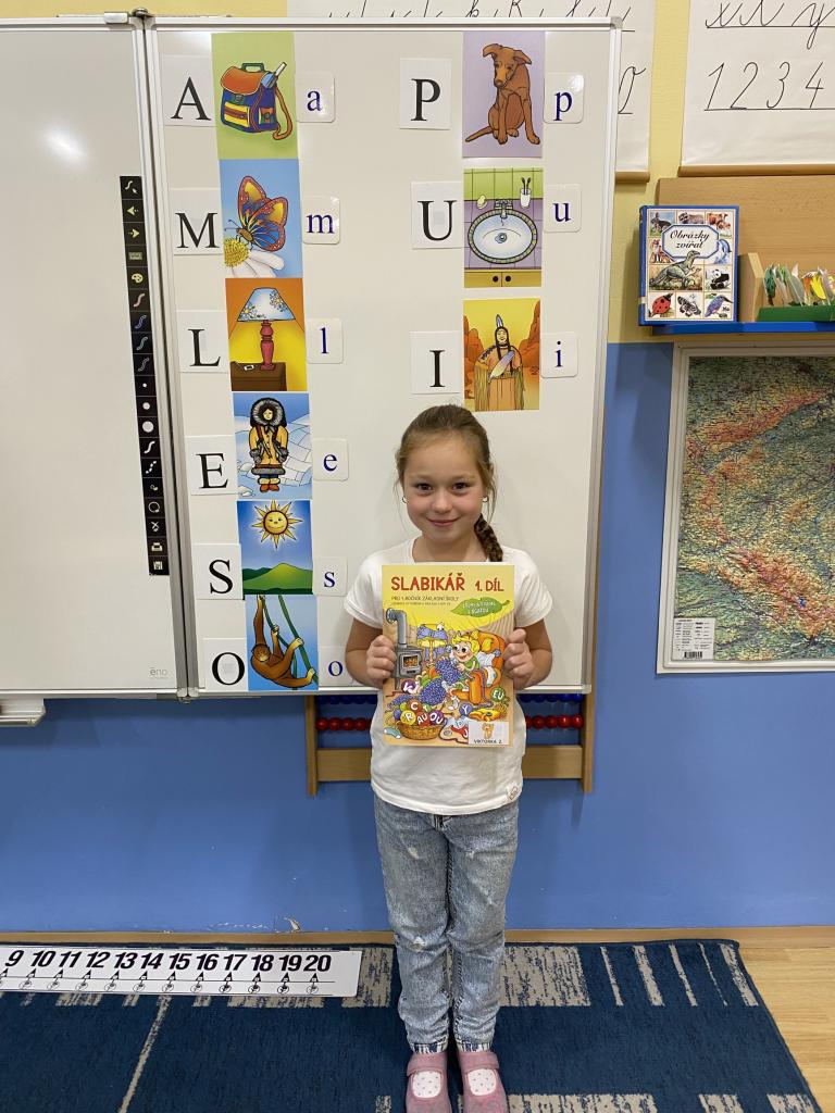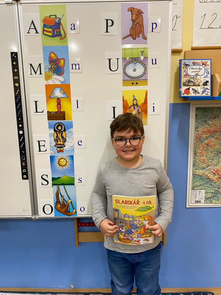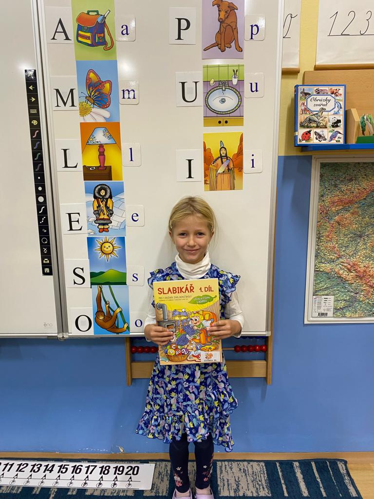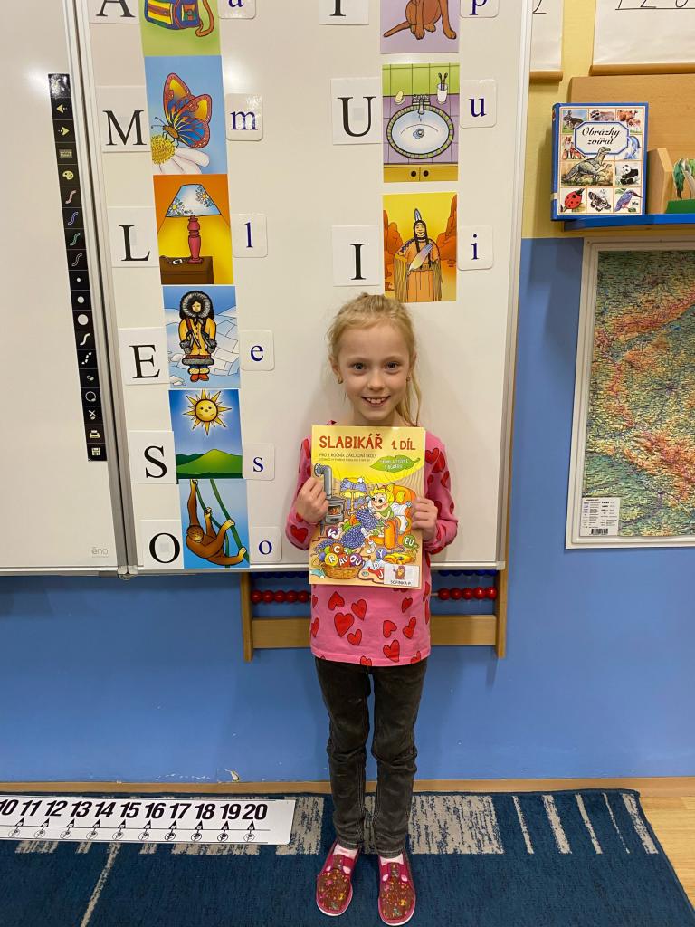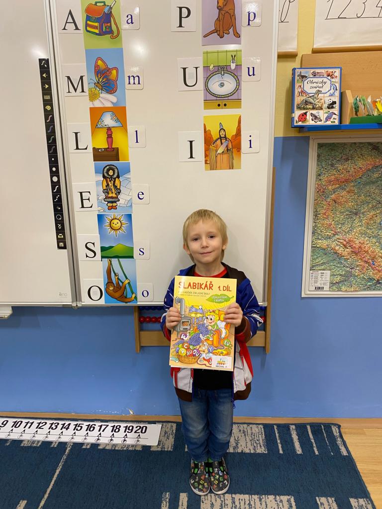 Naši prvňáčci v úterý 19. listopadu slavnostně obdrželi svoji první knihu, SLABIKÁŘ.