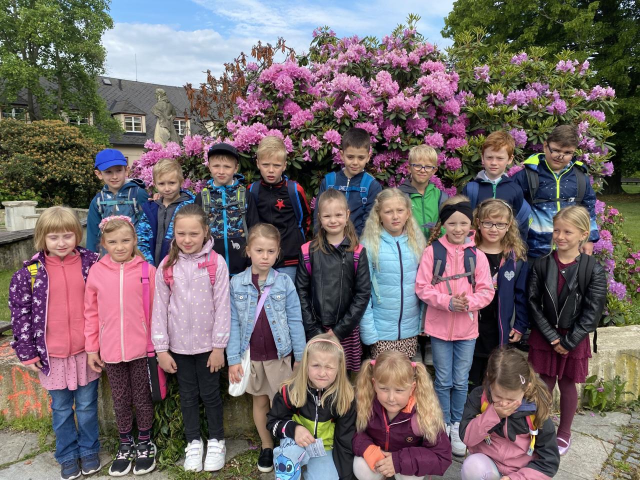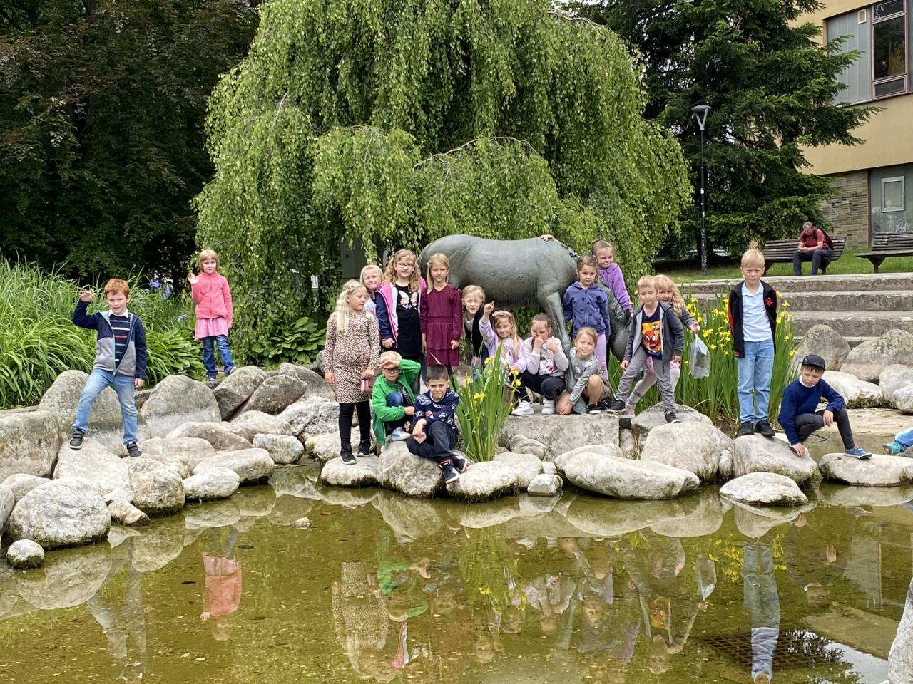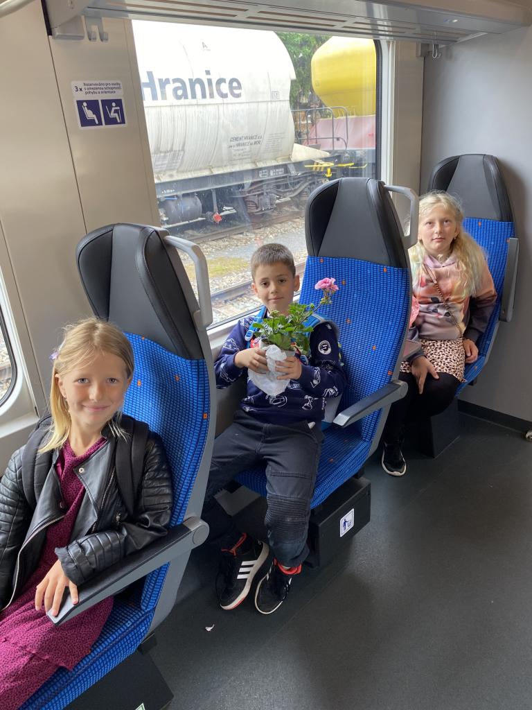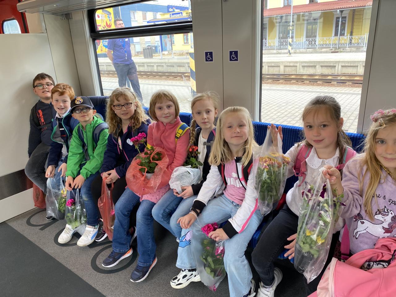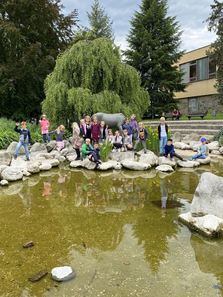 Tentokrát vyrazili prvňáčci na další výlet, a to vlakem do Šumperka. Počasí jim přálo, svítilo sluníčko, a tak pozorovali v městském parku rododendrony, lípy a v rybníčku pulce. S mírnou obavou ale i zvědavostí vnímali ruch okresního města, který je naprosto odlišný od toho vesnického. Prošli centrem až na náměstí Míru, kde je kromě jiného šumperská radnice. Po