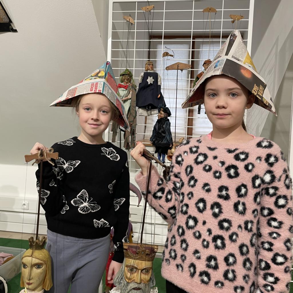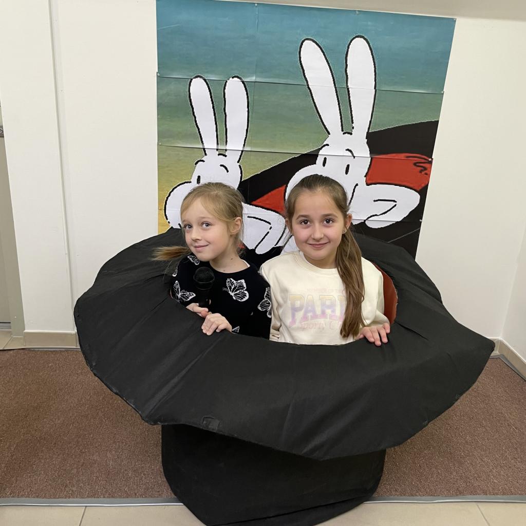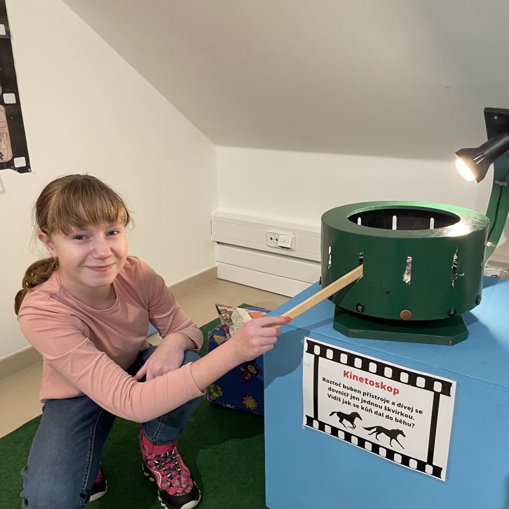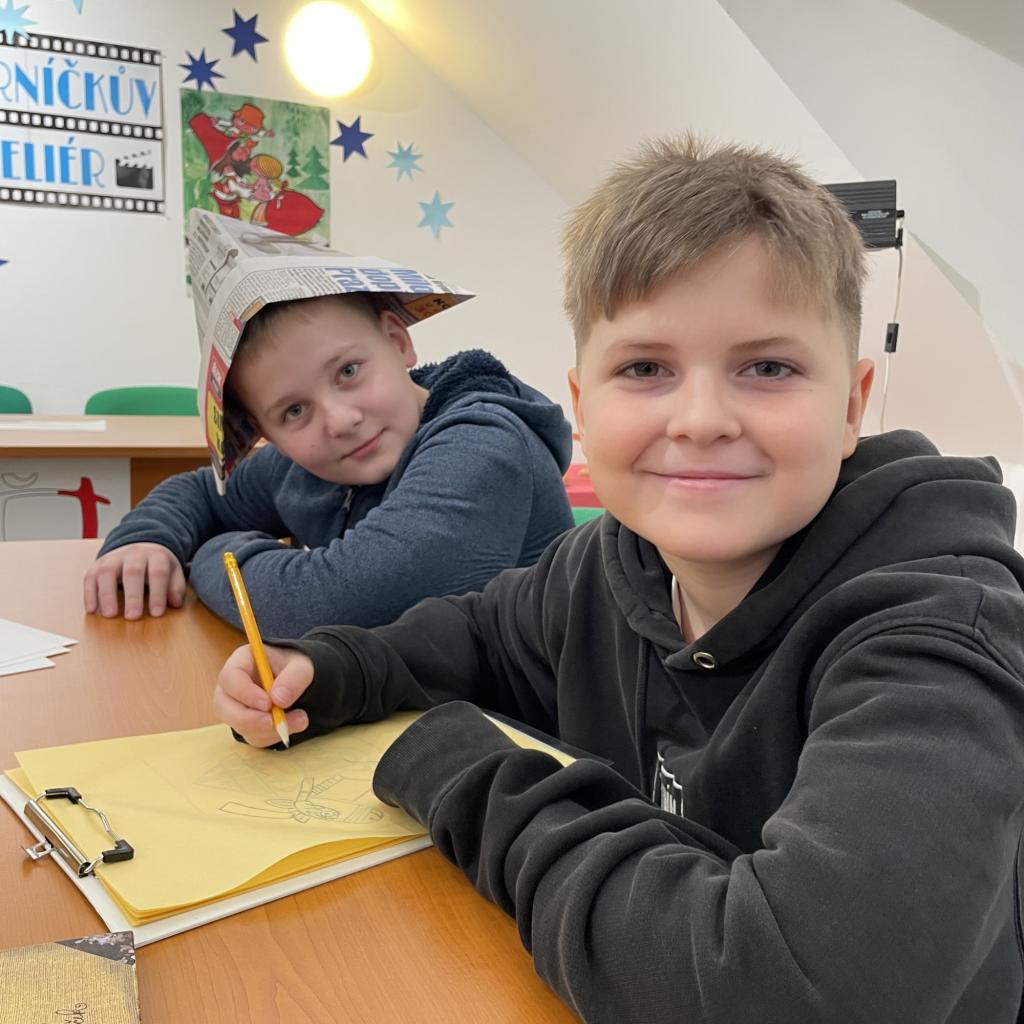 Ve výstavní části muzea si žáci vyzkoušeli role vypravěče, moderátora, režiséra, zvukaře, animátora i loutkoherce. Někteří se proměnili v králíky a „skočili“ do kouzelného klobouku, všichni si pak vyrobili vlastní papírovou čepici.