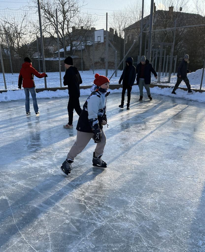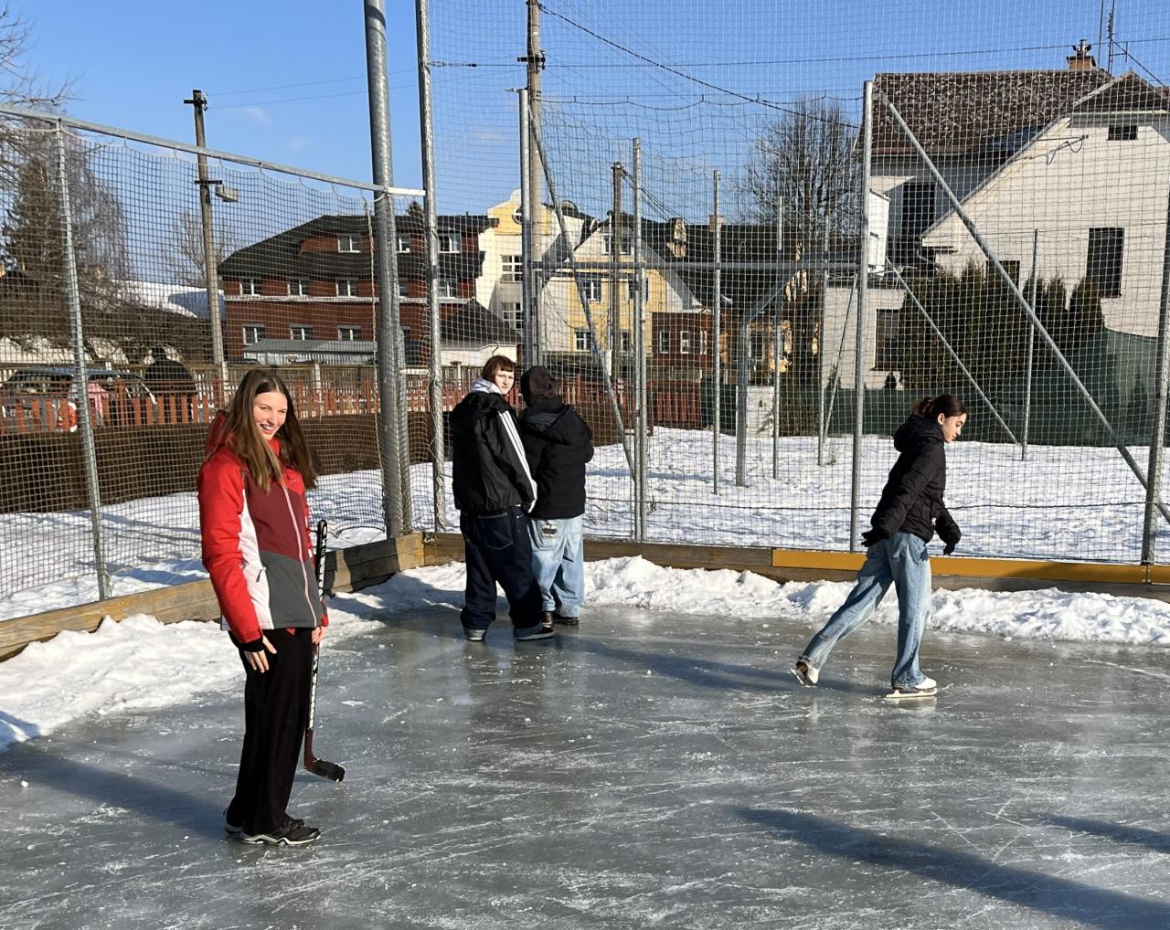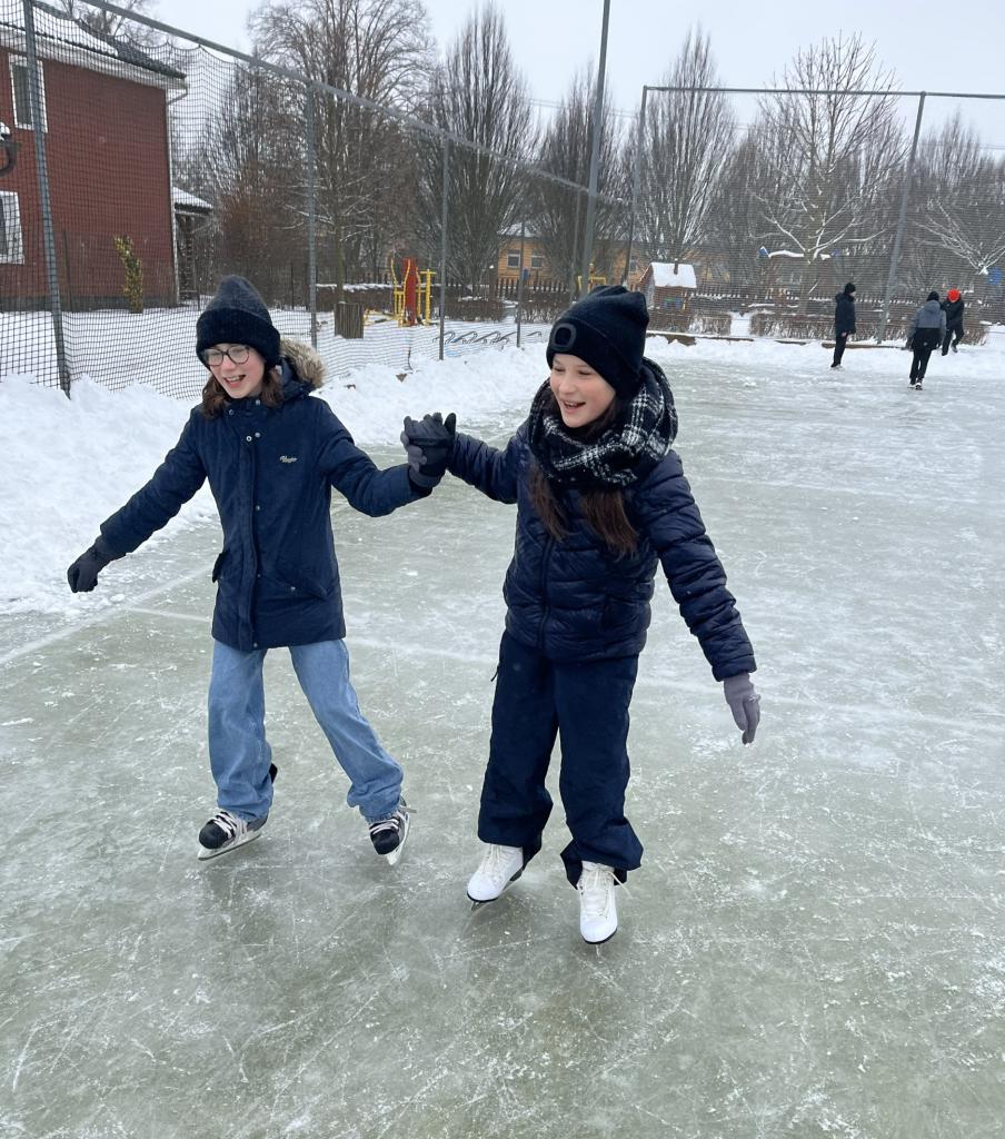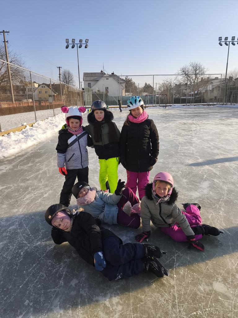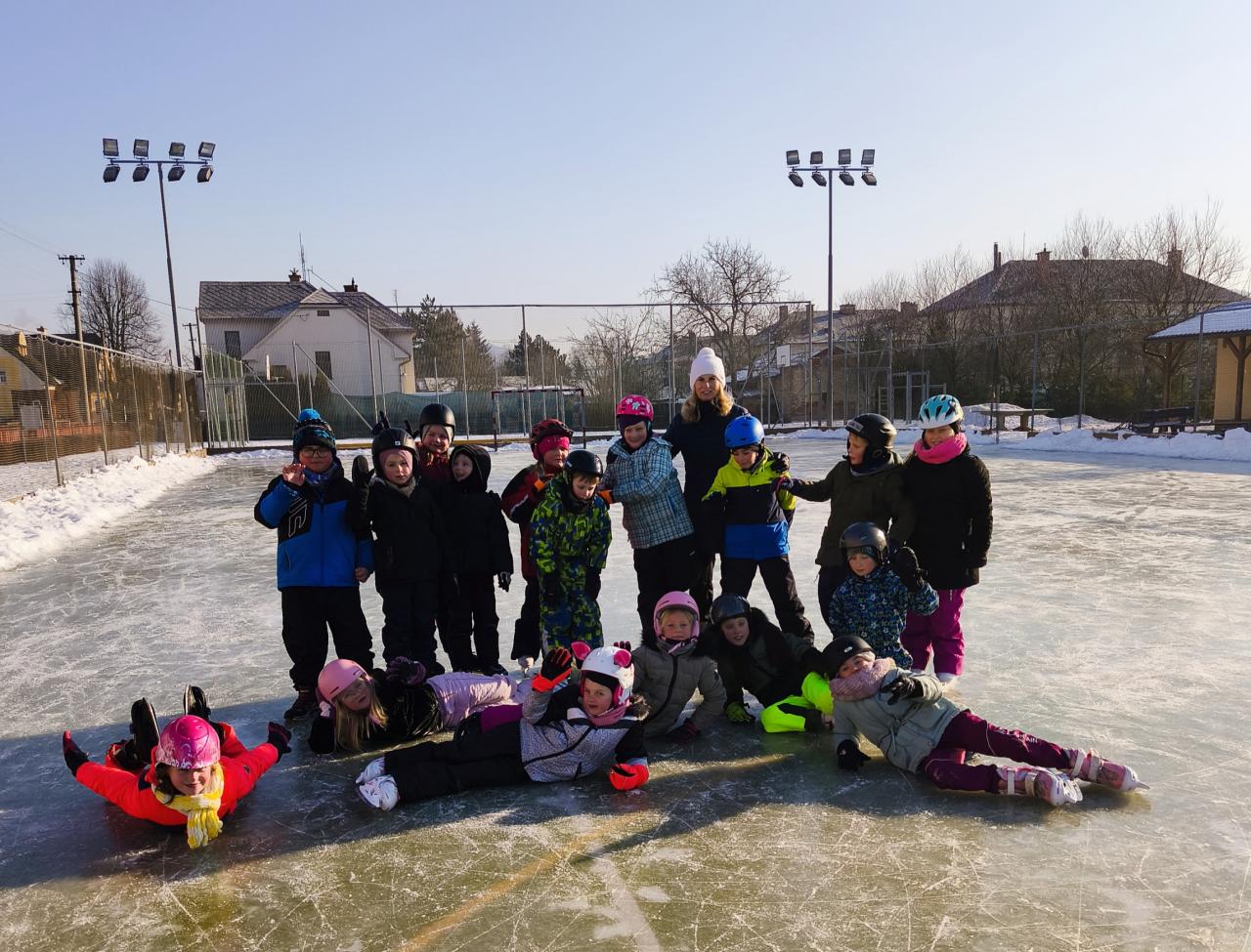 Školní hřiště se díky mrazivému počasí a péči místní obce proměnilo ve velkou ledovou plochu, která přímo vybízela k bruslení. Této jedinečné příležitosti hojně využívali žáci z celé školy, především v rámci hodin tělesné výchovy. Nechyběl smích, radost z pohybu, drobné pády, o první nejisté krůčky na ledě se pokoušeli i úplní začátečníci. Zimní období dětem přineslo nejen nadšení z pobytu na čerstvém vzduchu, ale také nevšední sportovní zážitek!