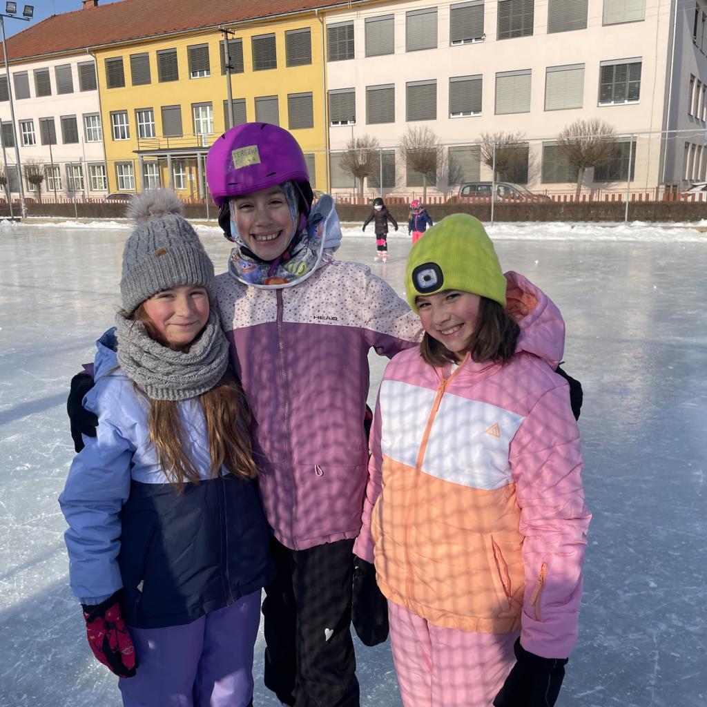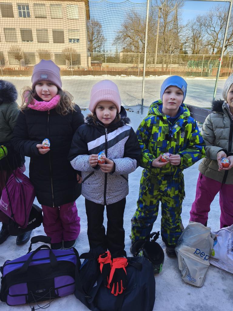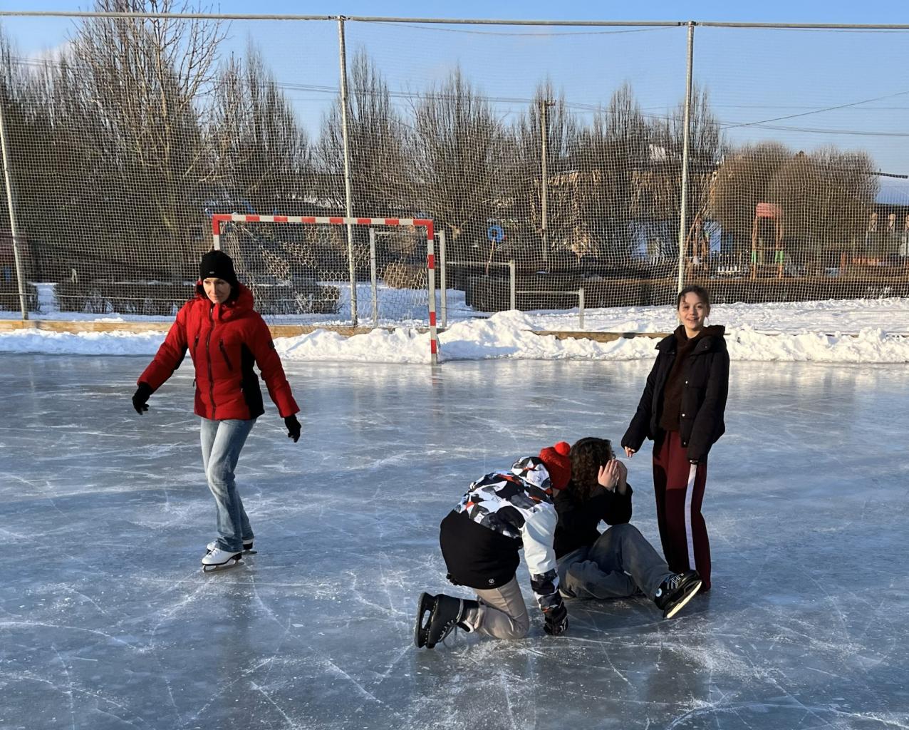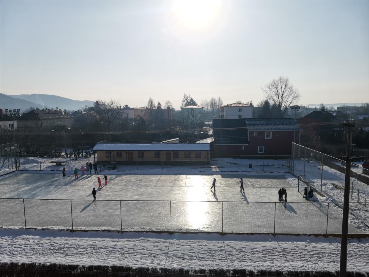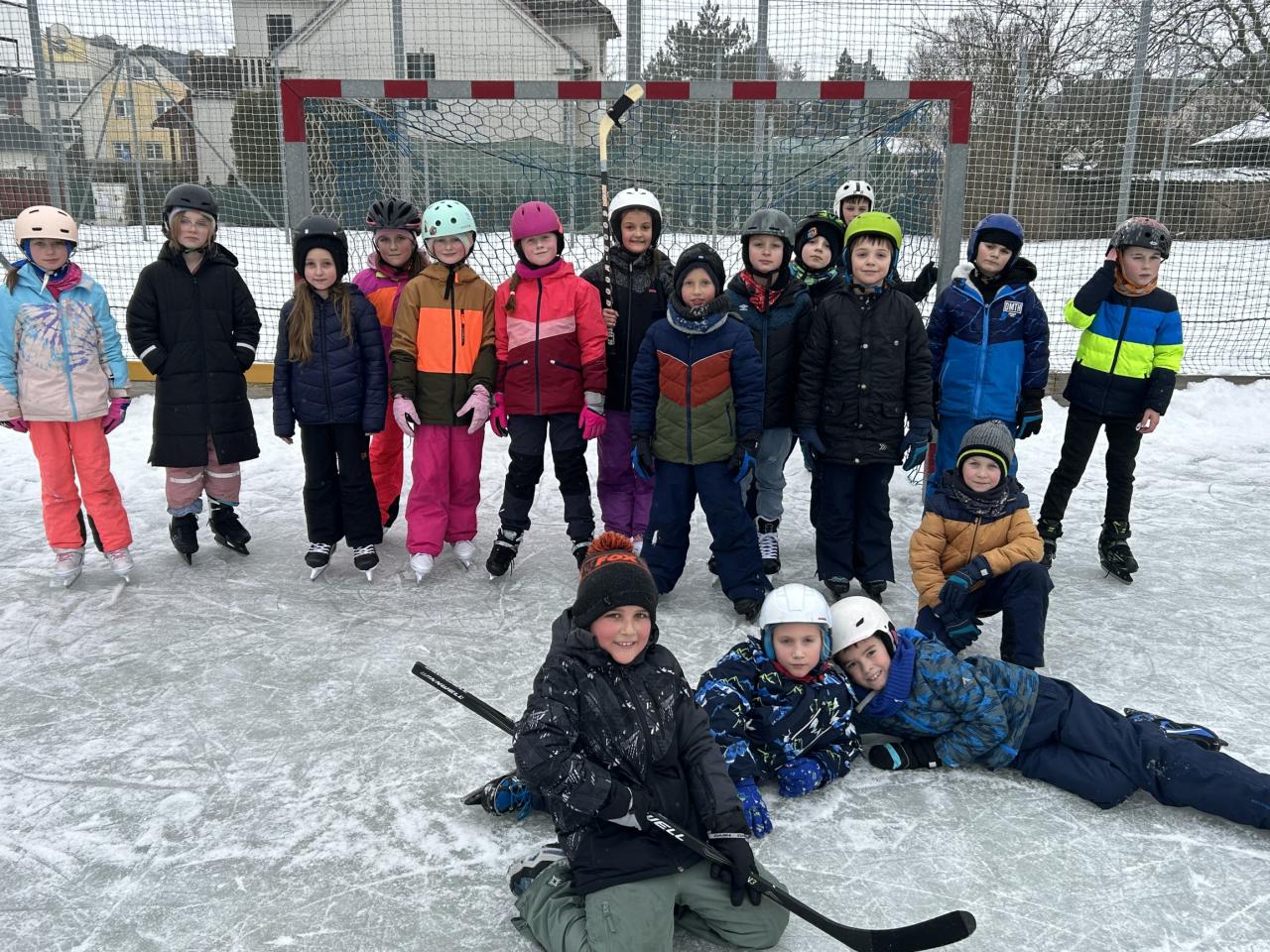 Školní hřiště se díky mrazivému počasí a péči místní obce proměnilo ve velkou ledovou plochu, která přímo vybízela k bruslení. Této jedinečné příležitosti hojně využívali žáci z celé školy, především v rámci hodin tělesné výchovy. Nechyběl smích, radost z pohybu, drobné pády, o první nejisté krůčky na ledě se pokoušeli i úplní začátečníci. Zimní období dětem přineslo nejen nadšení z pobytu na čerstvém vzduchu, ale také nevšední sportovní zážitek!