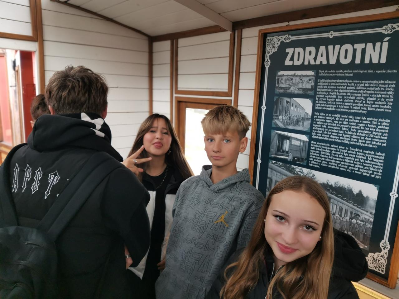 V průběhu týdne od 6. do 10. října 2025 navštívily postupně všechny třídy II. stupně putovní expozici Legiovlak, kterou pořádá Československá obec legionářská. Tento unikátní projekt přibližuje život a působení československých legionářů během 1. světové války na Sibiři v letech 1918 – 1920. Žáci se zúčastnili zajímavého výkladu průvodců oblečených v dobových legionářských uniformách a postupně prošli přibližně deset věrně zrekonstruovaných vagónů. V nich mohli nahlédnout do polní pošty, dílny, štábního vozu či ošetřovny a dozvědět se mnoho o každodenním životě vojáků na frontě i na cestě z fronty domů. V jednotlivých vozech byly také vystaveny panely s texty a fotografiemi, trojrozměrné artefakty, výzbroj i výstroj, ale také předměty každodenní potřeby vojáků. Cílem Legiovlaku je oživit povědomí o československých legiích, o obětech, kterých nebylo málo, a zdůraznit významný přínos legií pro vznik samostatného státu. Celá expozice originálně upozornila na důležitou kapitolu našich dějin a pro žáky se stala živou a přitažlivou formou výuky o událostech dávno minulých ...