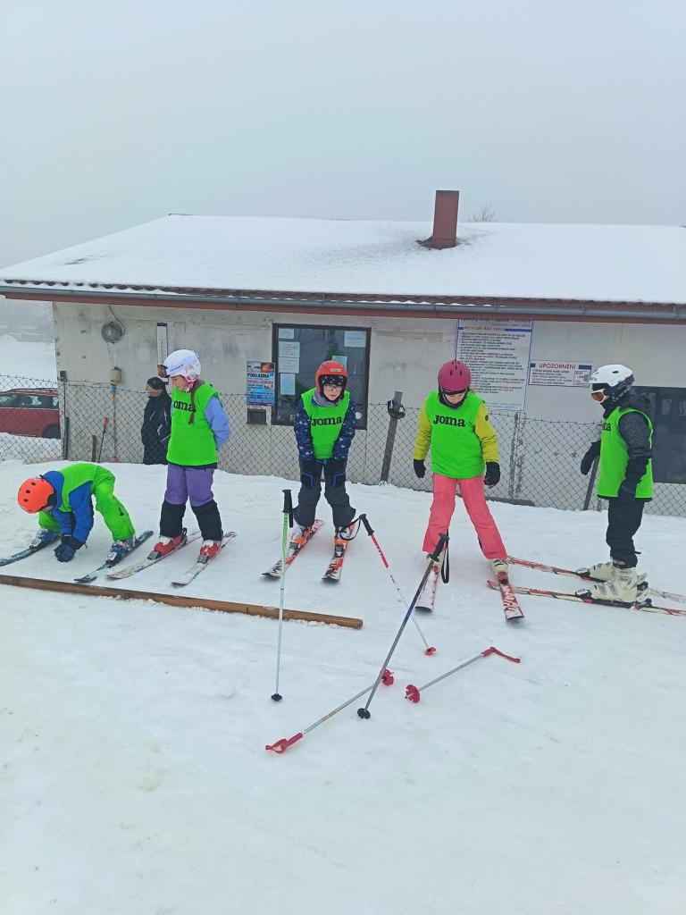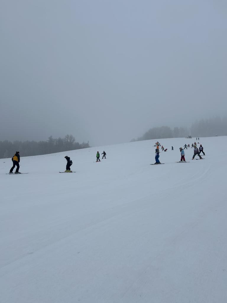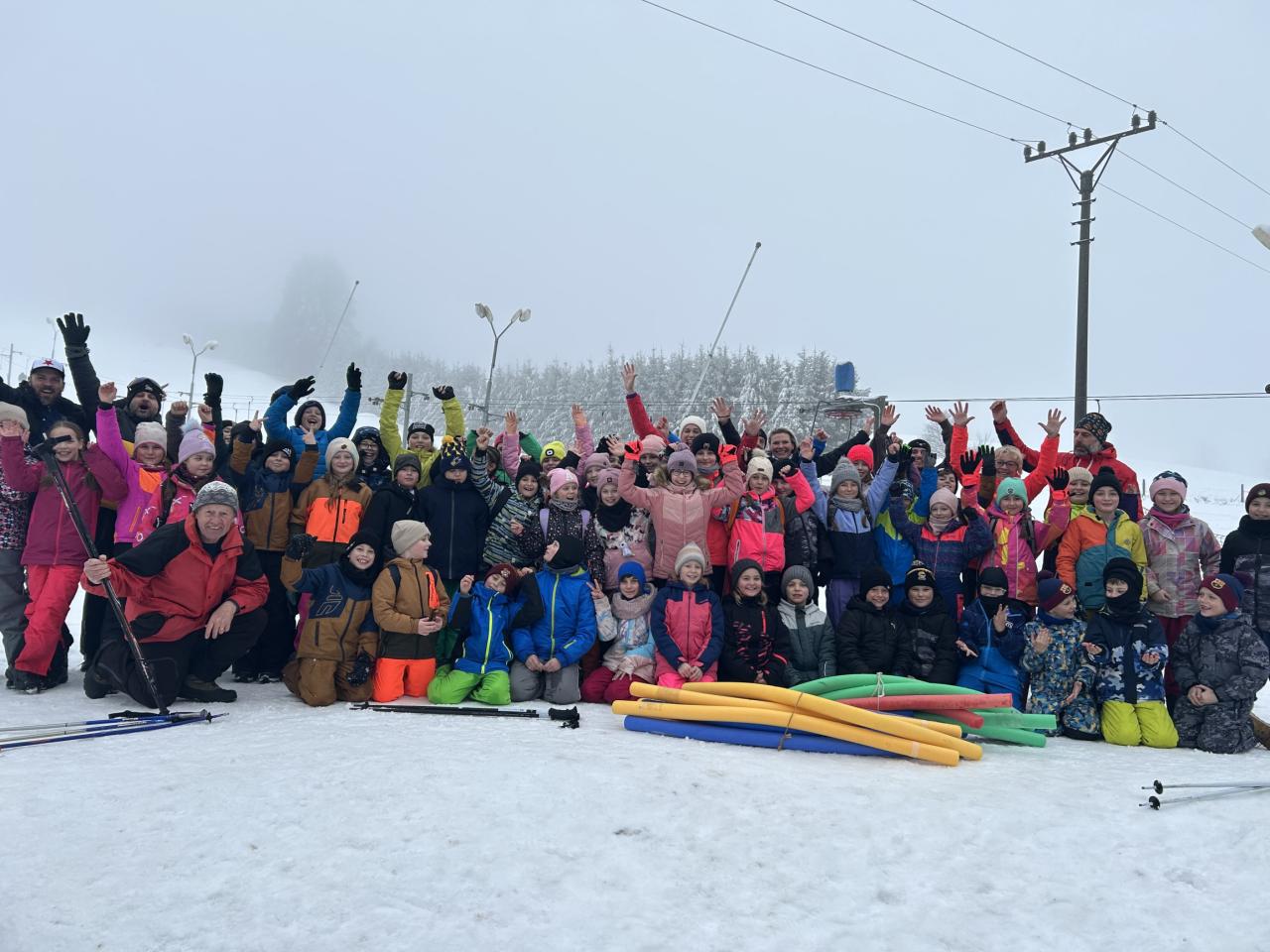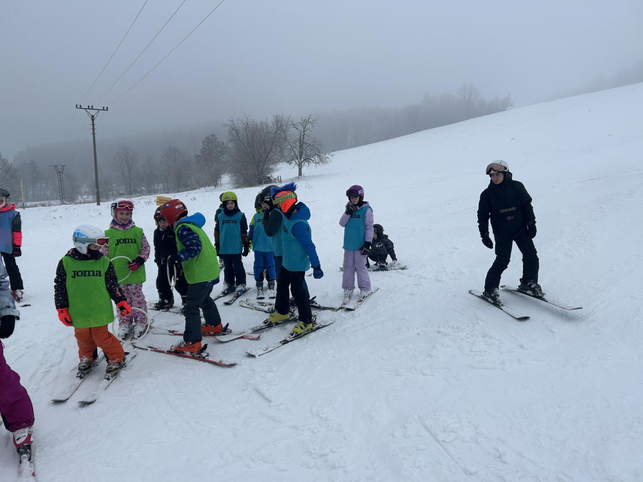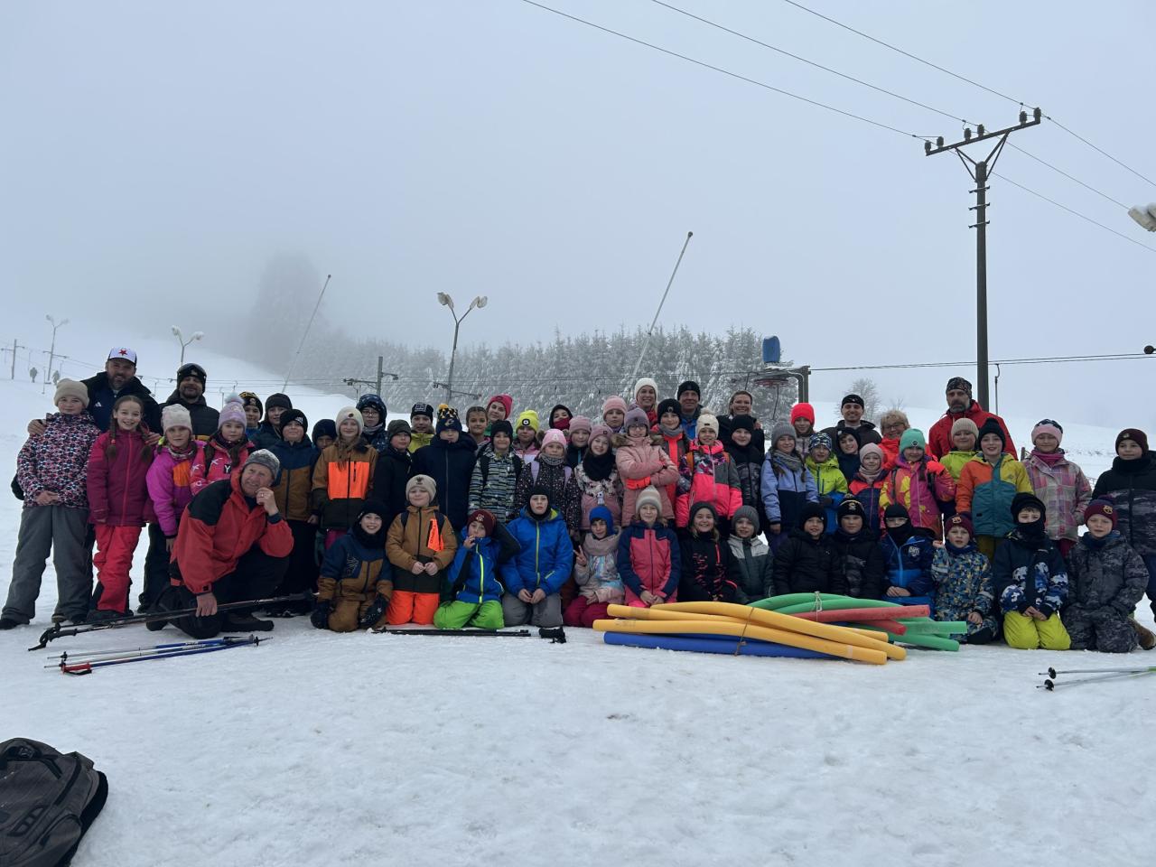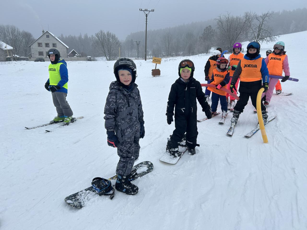 Letos nám paní Zima připravila milé překvapení! S příchodem nového roku začalo sněžit, kopce zbělaly a majitelé vleků hlásili dobré lyžařské podmínky. Tak na co čekat? Padat do měkké sněhové peřiny je určitě příjemnější než do bláta ... Už tradičně do Zborova vyrazilo pro změnu netradičně 50 lyžařů, což je opravdu hodně! S nimi samozřejmě tým nadšených učitelů a obětavých instruktorů z řad dospělých, kteří jako sehraná parta jezdí s dětmi 1. stupně už roky ... Bohužel se k nim opět přidala nechtěná „parťačka“ mlha, ale náladu jim nezkazila, i když se opravdu snažila. Až tak, že se musely při závěrečných závodech ve slalomu použít vysílačky! Školáci lyžovali v šesti družstvech, sedmé družstvo tvořili „snowboarďáci“. Začátečníci hned druhý den bezpečně sjeli velký kopec, ti pokročilejší poctivě pilovali náročnější lyžařské dovednosti, prostě jedna velká paráda! Ve škole pak učitelé provedli vyhodnocení závodů, rozdali diplomy a ceny, a proto už jen to známé „SKOL“