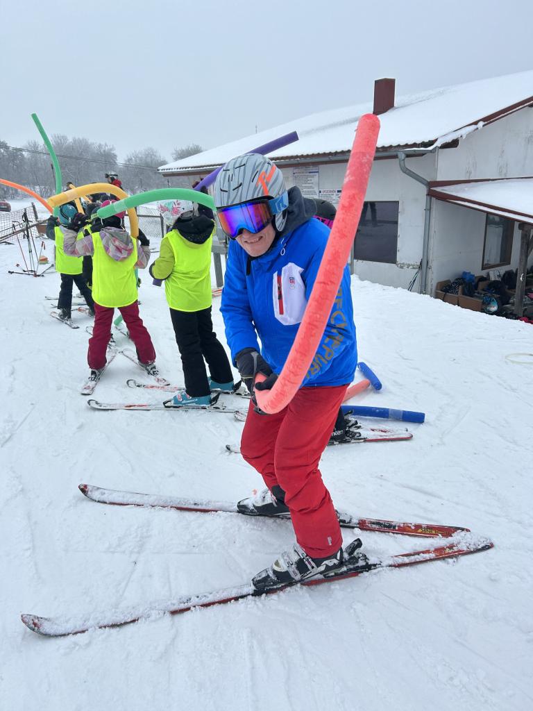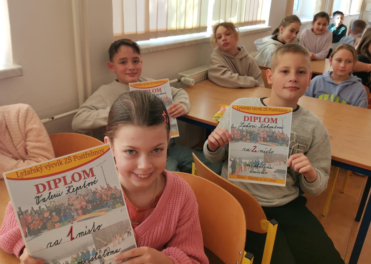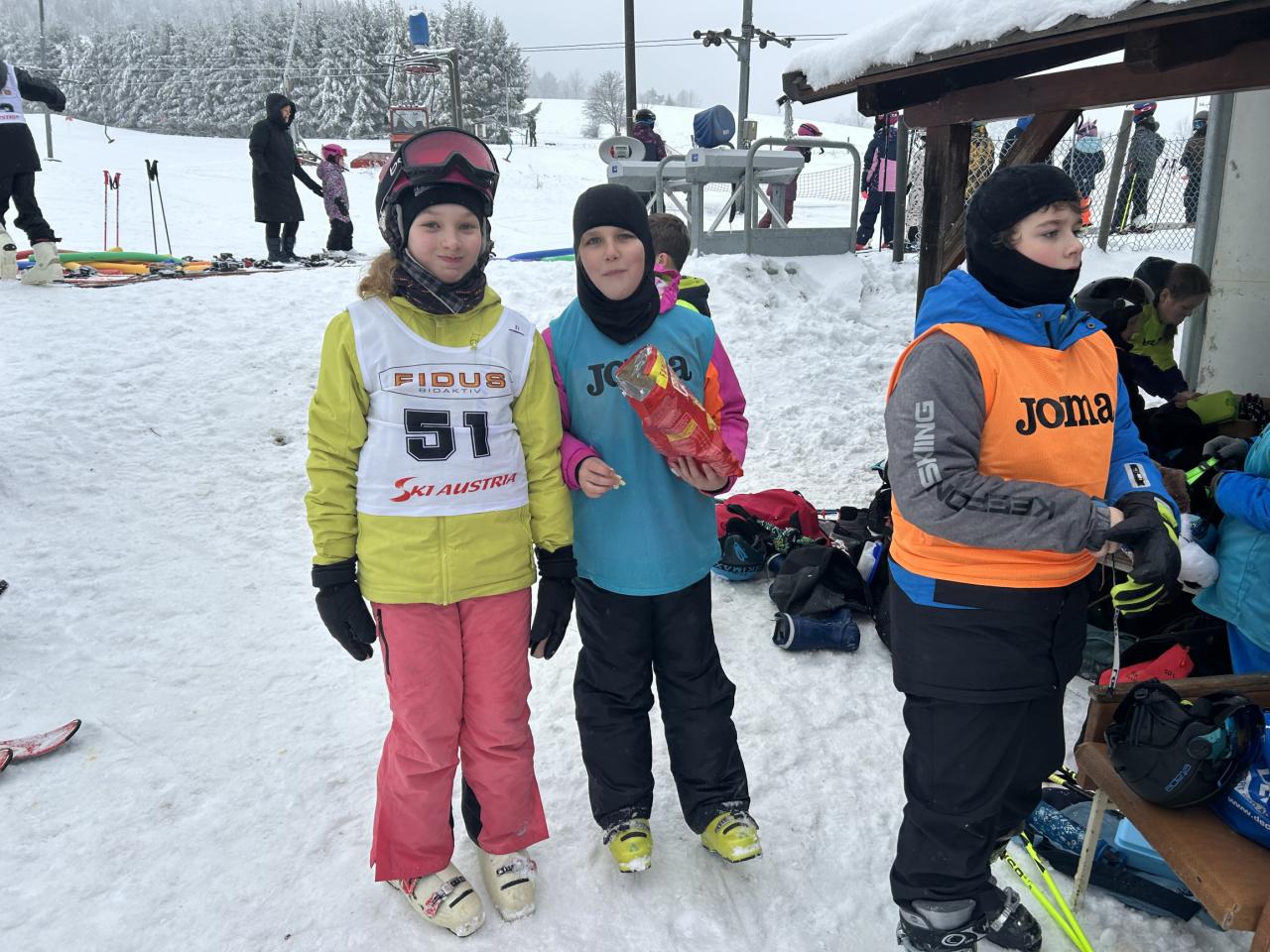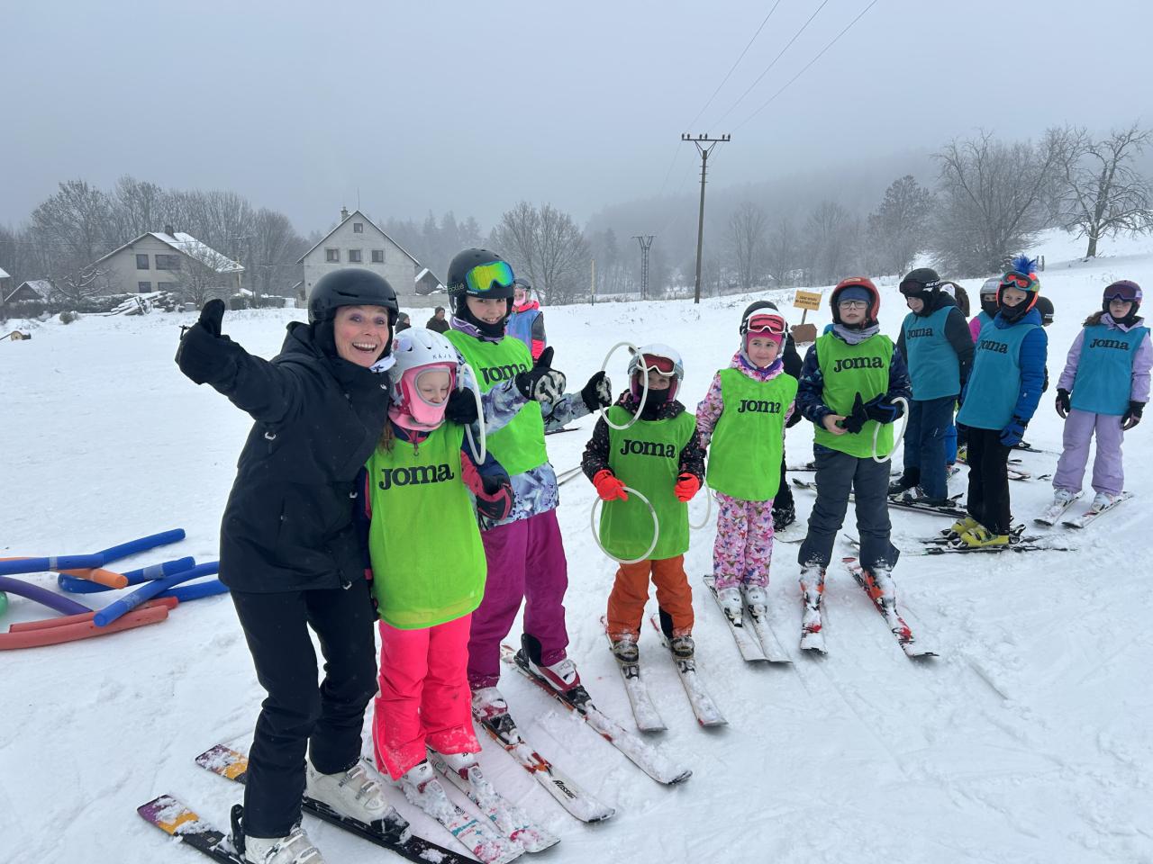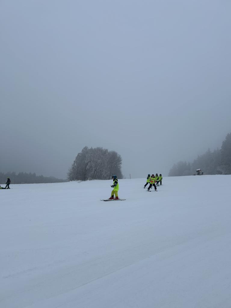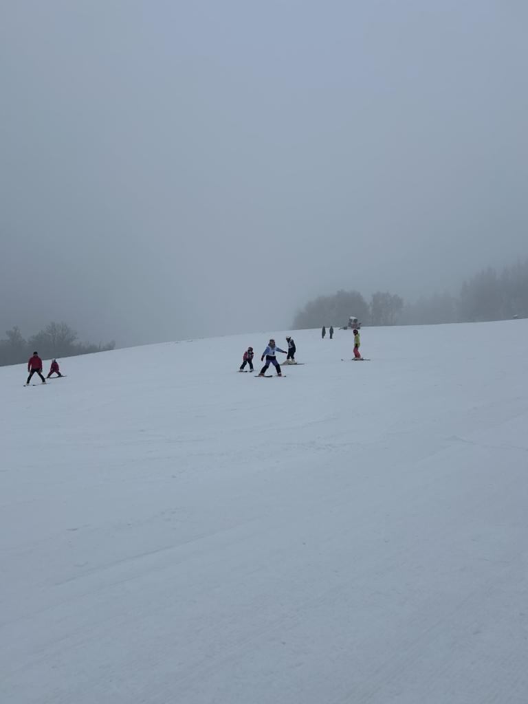 Letos nám paní Zima připravila milé překvapení! S příchodem nového roku začalo sněžit, kopce zbělaly a majitelé vleků hlásili dobré lyžařské podmínky. Tak na co čekat? Padat do měkké sněhové peřiny je určitě příjemnější než do bláta ... Už tradičně do Zborova vyrazilo pro změnu netradičně 50 lyžařů, což je opravdu hodně! S nimi samozřejmě tým nadšených učitelů a obětavých instruktorů z řad dospělých, kteří jako sehraná parta jezdí s dětmi 1. stupně už roky ... Bohužel se k nim opět přidala nechtěná „parťačka“ mlha, ale náladu jim nezkazila, i když se opravdu snažila. Až tak, že se musely při závěrečných závodech ve slalomu použít vysílačky! Školáci lyžovali v šesti družstvech, sedmé družstvo tvořili „snowboarďáci“. Začátečníci hned druhý den bezpečně sjeli velký kopec, ti pokročilejší poctivě pilovali náročnější lyžařské dovednosti, prostě jedna velká paráda! Ve škole pak učitelé provedli vyhodnocení závodů, rozdali diplomy a ceny, a proto už jen to známé „SKOL“