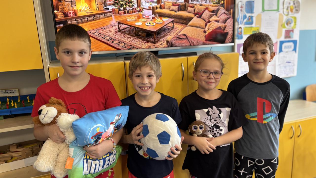 Dne 27. listopadu si děti z III. oddělení užily pohodové pyžamové odpoledne. Nejdříve psaly vzkazy a malovaly obrázky pro nemocné děti v šumperské nemocnici. Pak se mohly pomazlit se svými oblíbenými plyšáky, které si přinesly z domova. S paní vychovatelkou si školáci pochutnali na drobném občerstvení, zkoukli krátkou pohádku a zbyl jim čas i na taneček ...