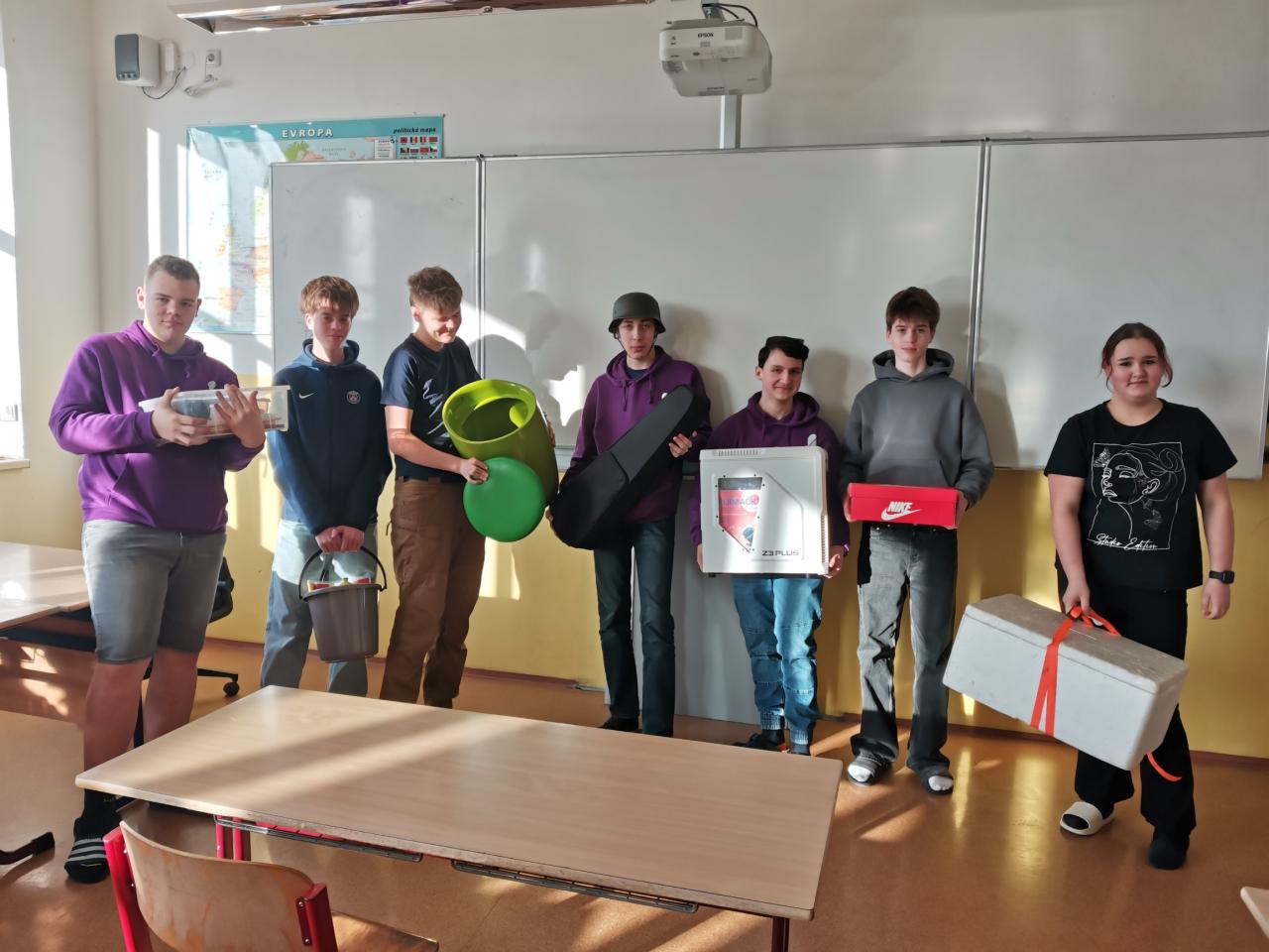 Vybrat nejoriginálnější nápad by bylo opravdu těžké. Zvlášť když se ve třídách objevil například rudl, popelnice na plasty, chlebník, podběrák na ryby nebo ramínko na oblečení. Ačkoli přeprava učebnic a sešitů nebyla zrovna snadná a pohodlná, jisté je, že si žáci tento týden plnými doušky užili a prokázali svou kreativitu.